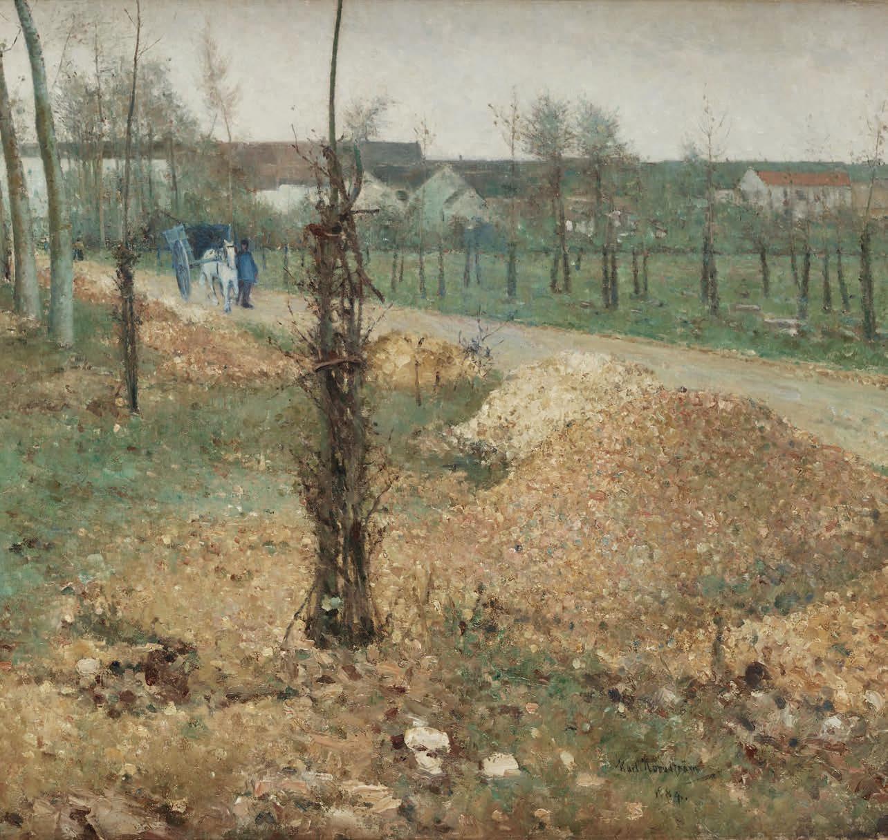 Karl Nordström (1855–1923) var en betydande svensk konstnär verksam under slutet av 1800-talet och början av 1900-talet. Hans konstnärskap präglades av en ständig utveckling och ett djupt intresse för naturen, vilket speglas i många av hans verk. En av de mest avgörande perioderna i hans karriär var hans tid i Grez-sur-Loing, en fransk konstnärskoloni dit han reste i början av 1880-talet. Här, bland konstnärer som Carl Larsson, Richard Bergh, Bruno Liljefors och Christian Krogh, influerades Nordström av det franska friluftsmåleriet och de tidiga tendenserna inom impressionismen. Samtidigt utvecklade han sin egen unika stil, där han förenade realism och en ny, mer personlig tolkning av naturen.