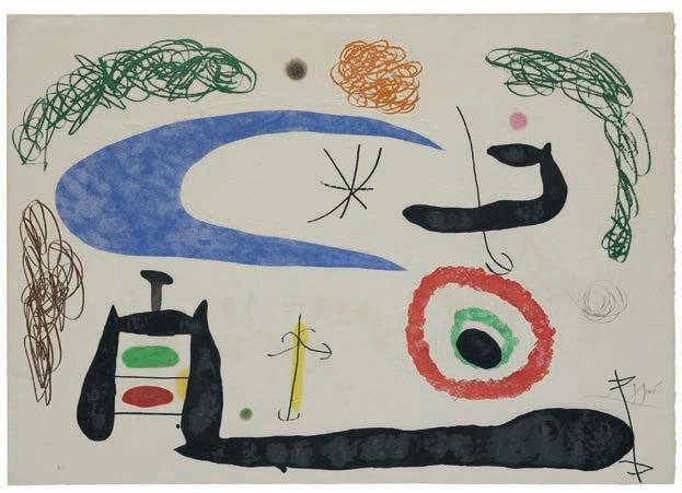 822. Joan Miró (Spanien, 1893–1983) ”Dormir sous la lune”. Signerad med blyerts och numrerad HC. Etsning och akvatint med torrnål och carborundum, 1969. Utgiven av Galerie Maeght, Paris. Bladstorlek 72,4 x 102,6 cm.