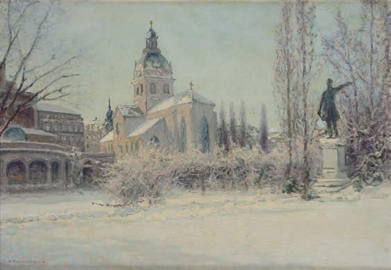 814. Anshelm Schultzberg (Sverige, 1862–1945) Vintermotiv från Kungsträdgården.