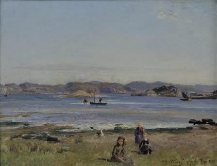 583. Hilma af Klint (Sverige, 1862–1944) ”Sotarpojkar Stigberget”. Signerad H. af Klint och daterad 1890. Olja på duk 80 x 117 cm.