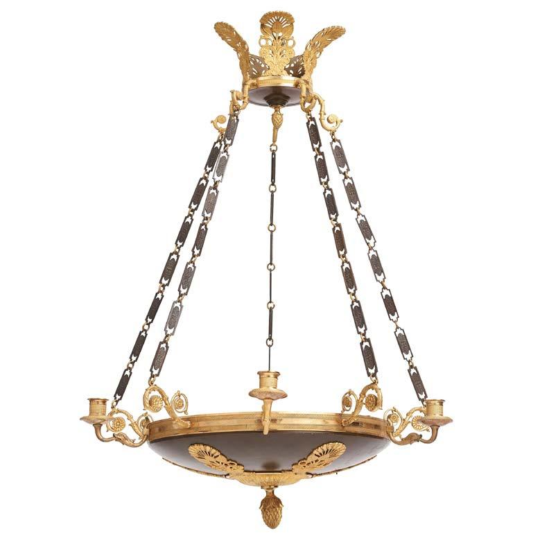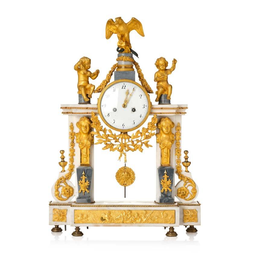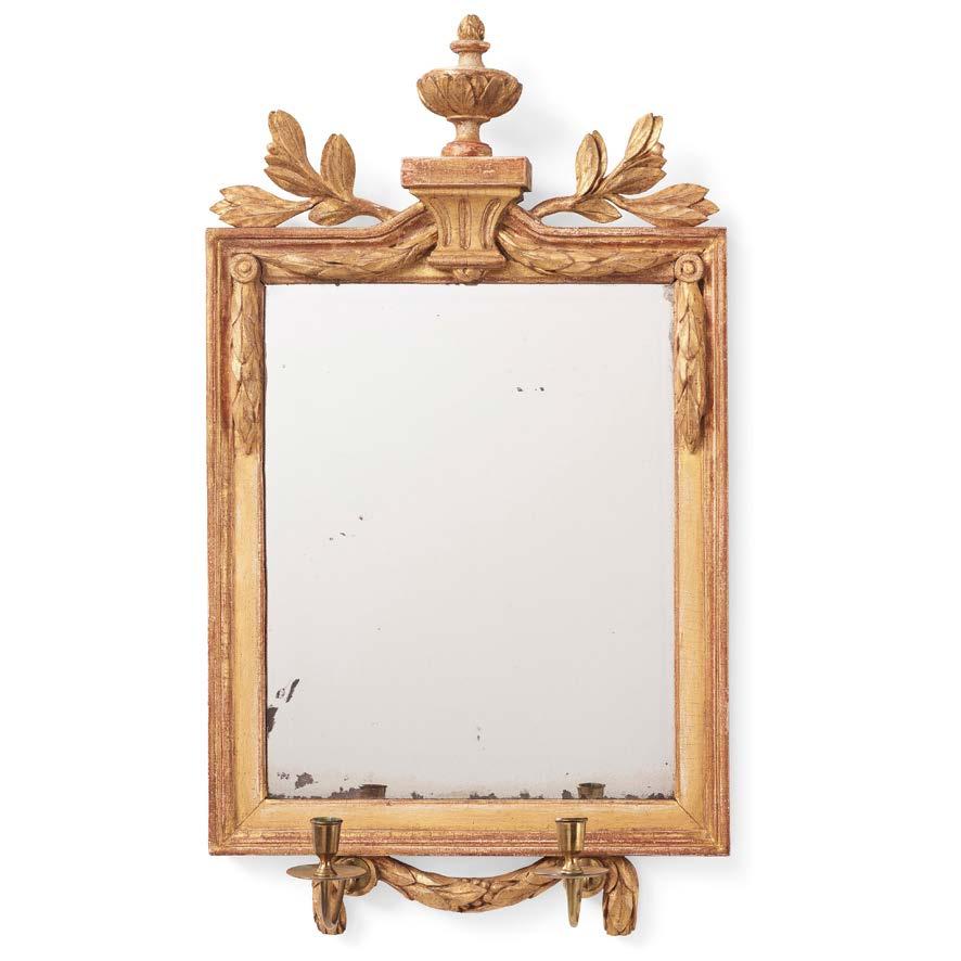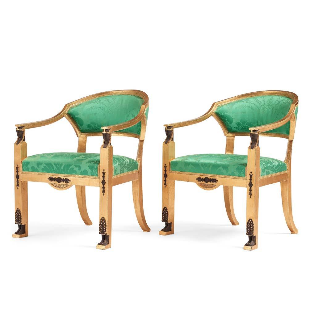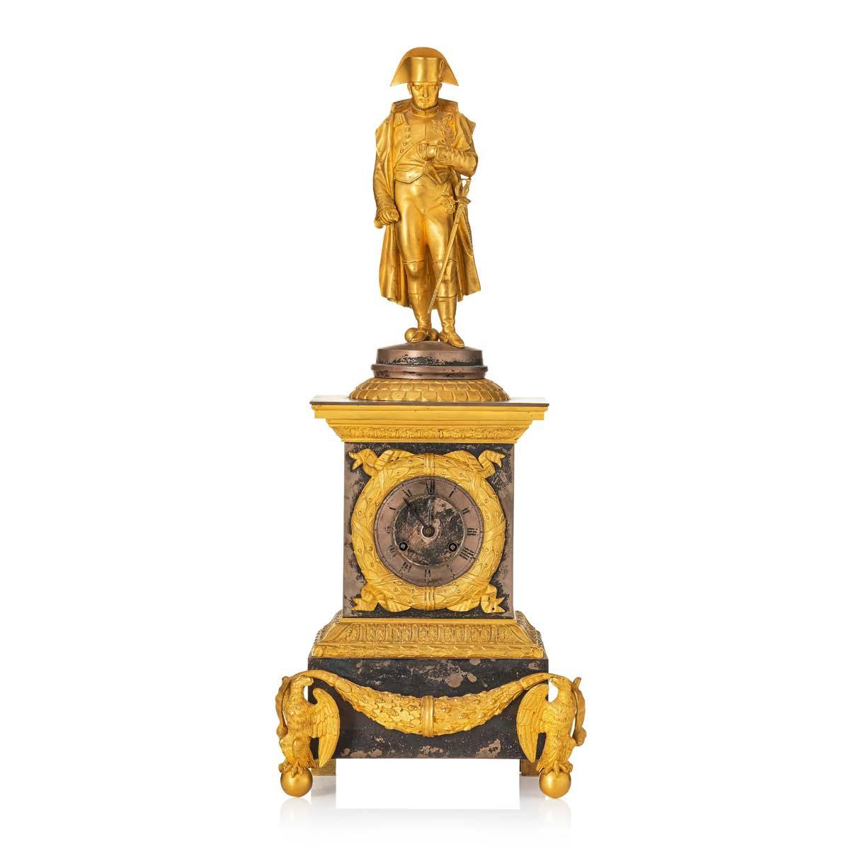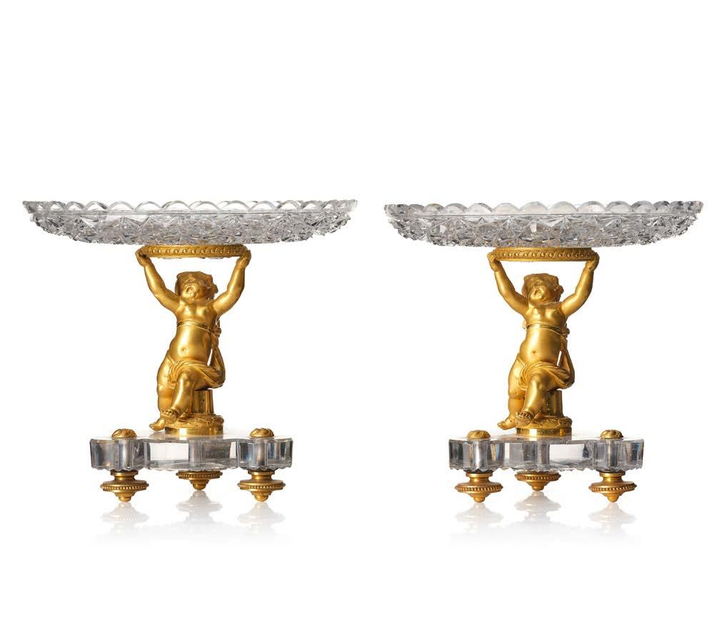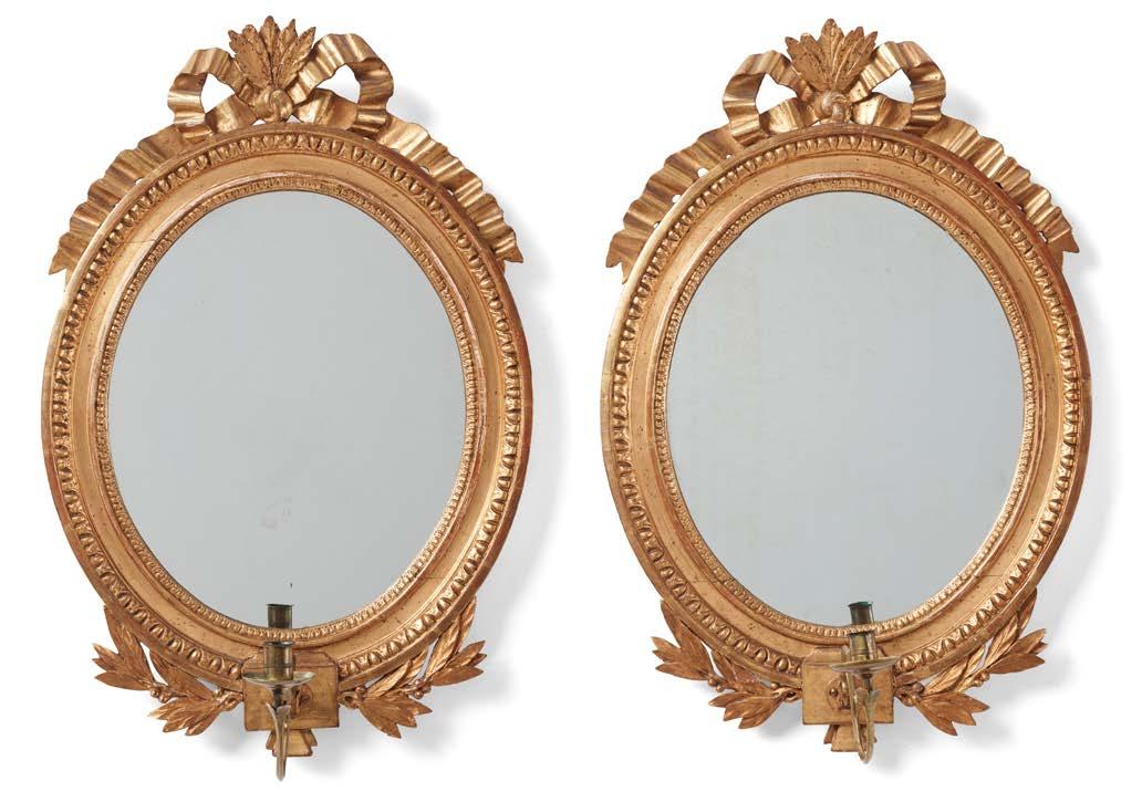 3. Bokskåp, Frankrike, 1800-talets början, Empire. Så kallat ”bibliothèque”. Fanerat med mahogny. Beslag av förgylld brons. Glasat dörrpar med bakomvarande hyllinredning flankerat av egyptiserande hermer. Avslutande lejontassar. Längd 120, bredd 40, höjd 189 cm. Nyckel medföljer.