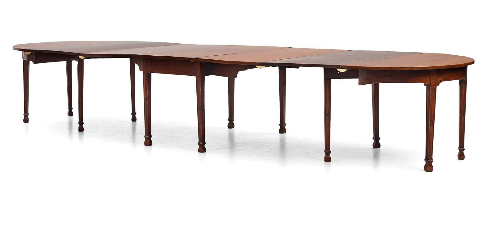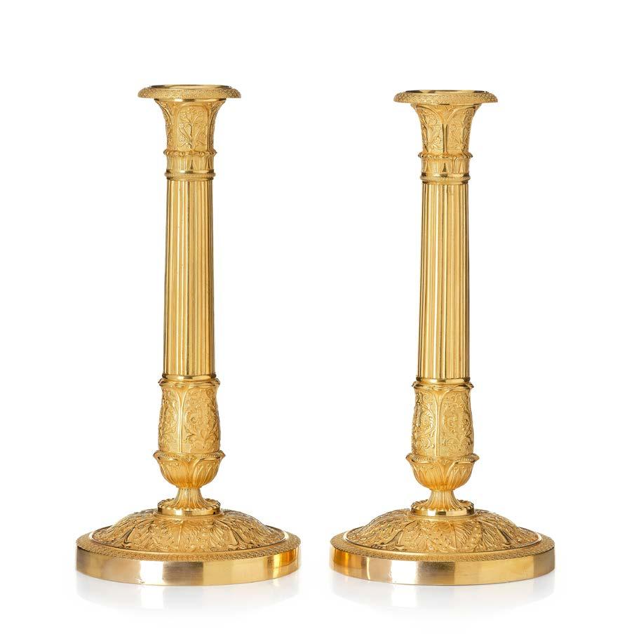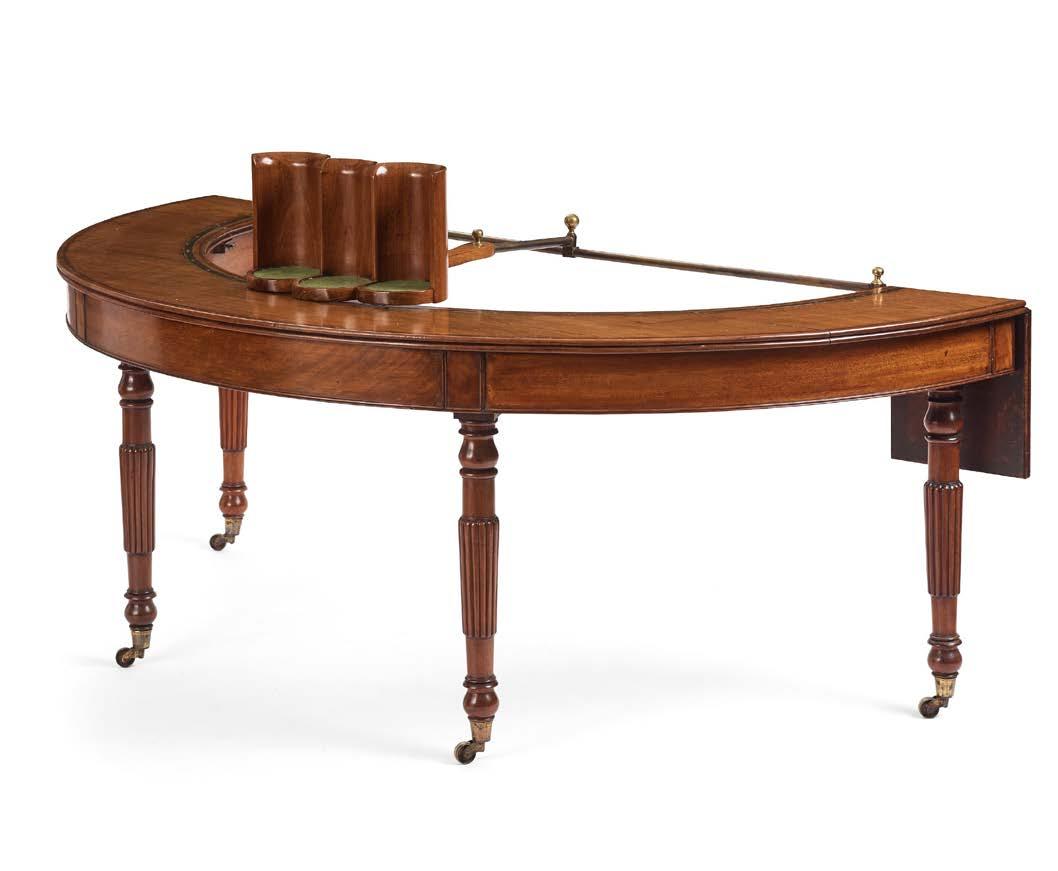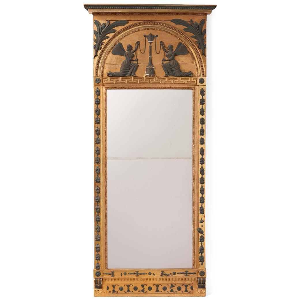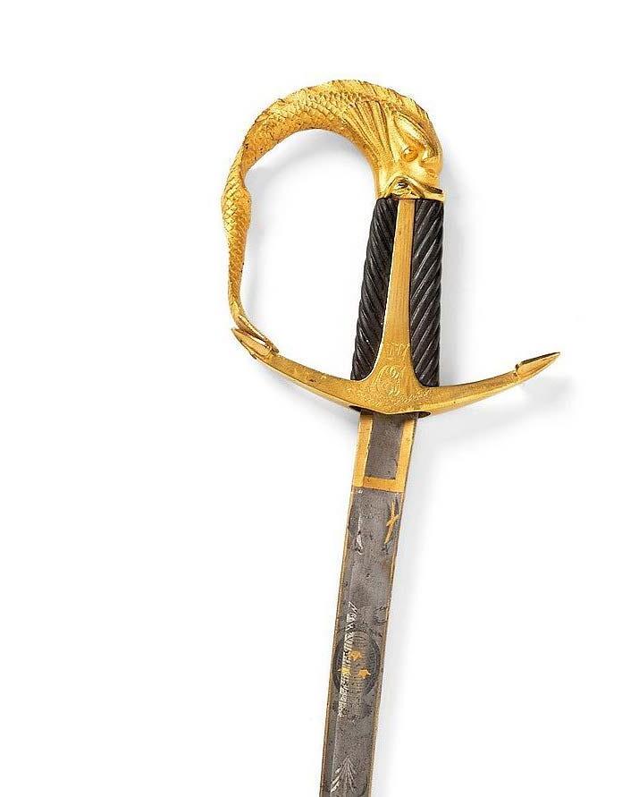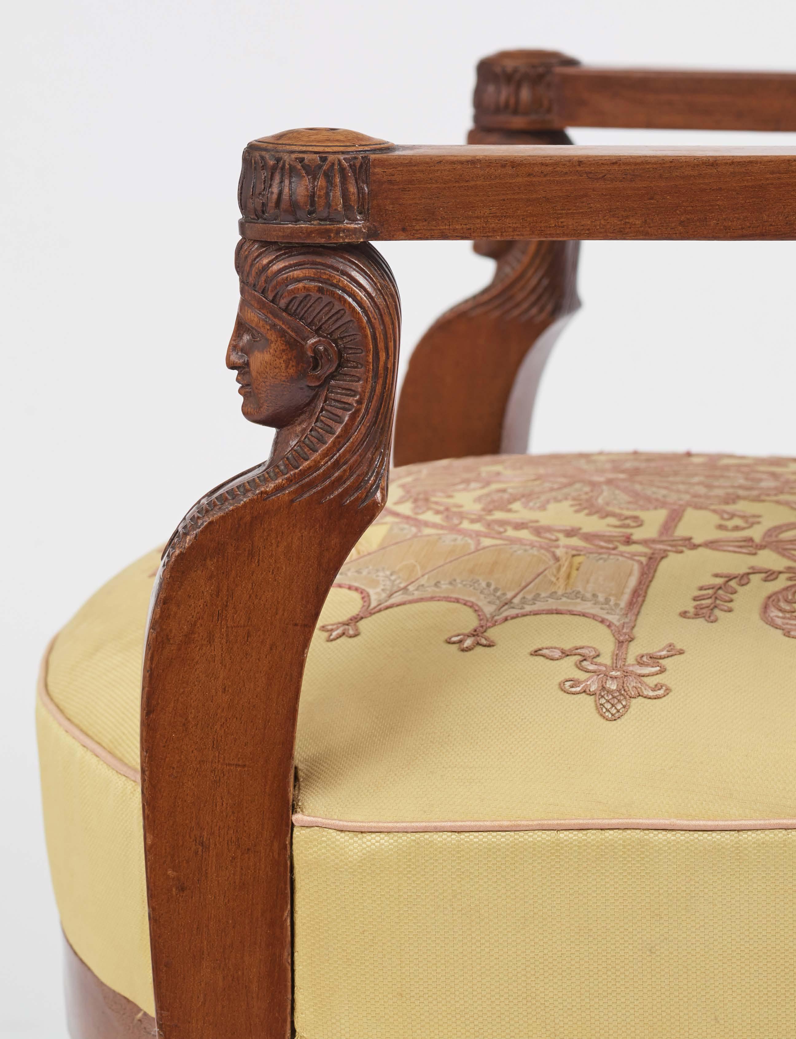 3. Bokskåp, Frankrike, 1800-talets början, Empire. Så kallat ”bibliothèque”. Fanerat med mahogny. Beslag av förgylld brons. Glasat dörrpar med bakomvarande hyllinredning flankerat av egyptiserande hermer. Avslutande lejontassar. Längd 120, bredd 40, höjd 189 cm. Nyckel medföljer.