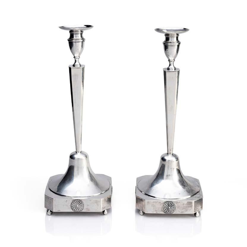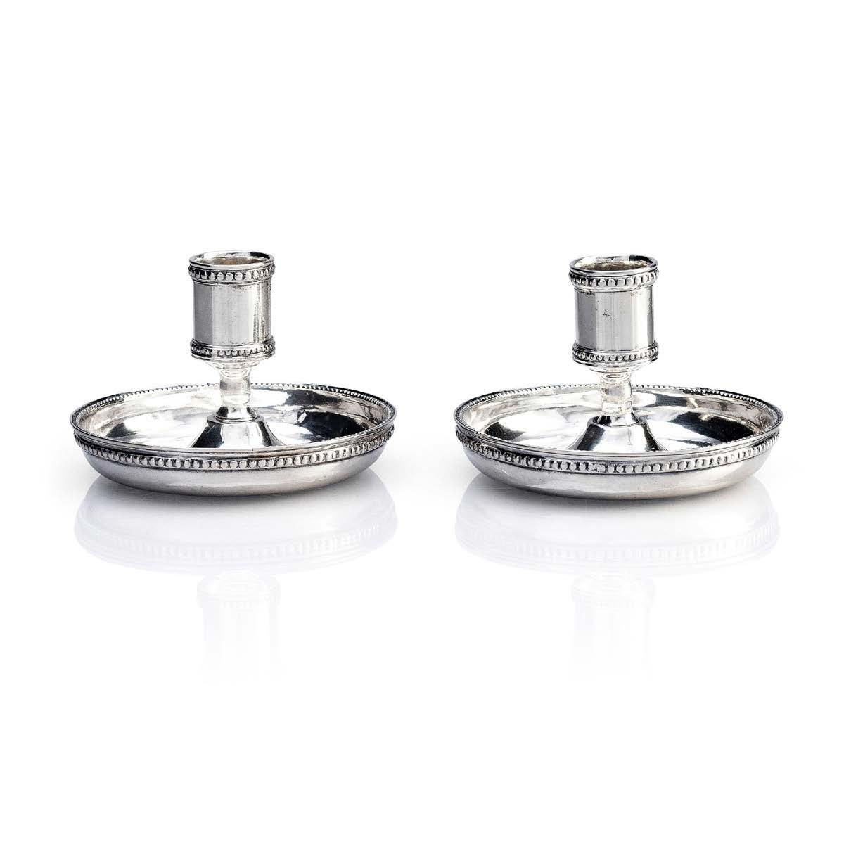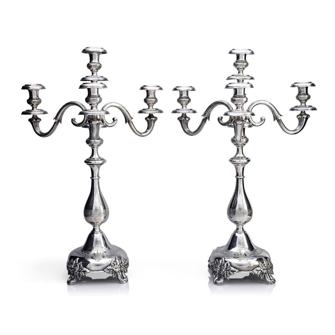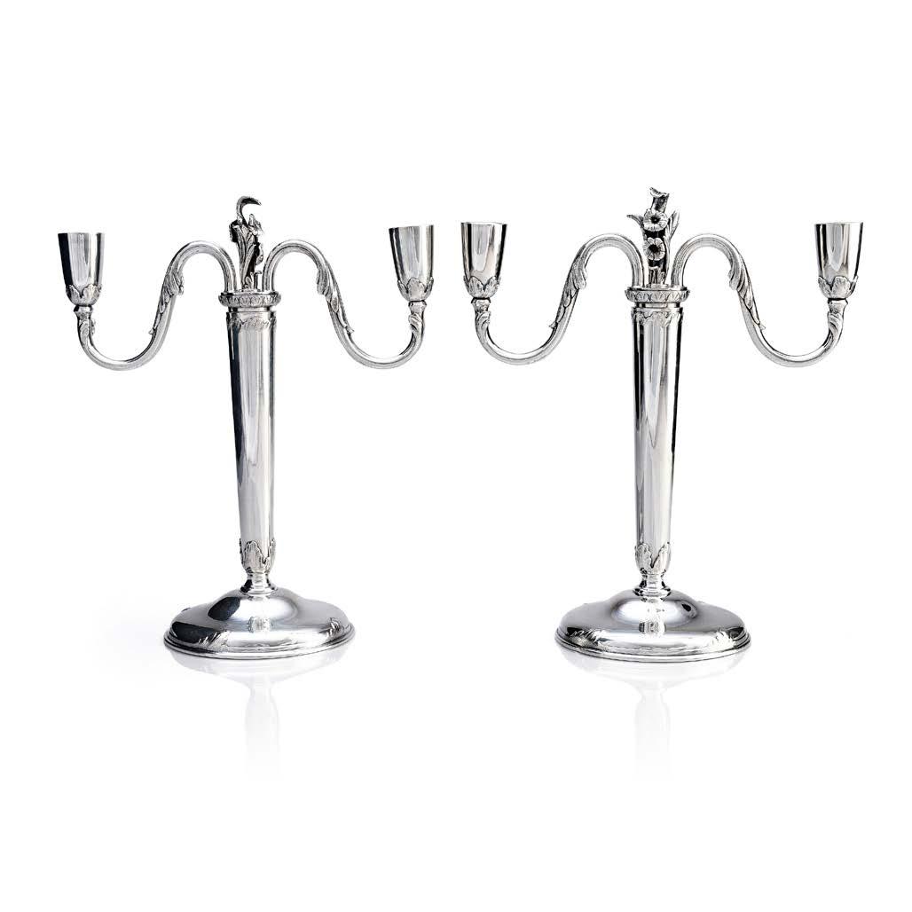 469. Kandelabrar, ett par, tvåarmade, silver, W.A. Bolin, Stockholm 1948.