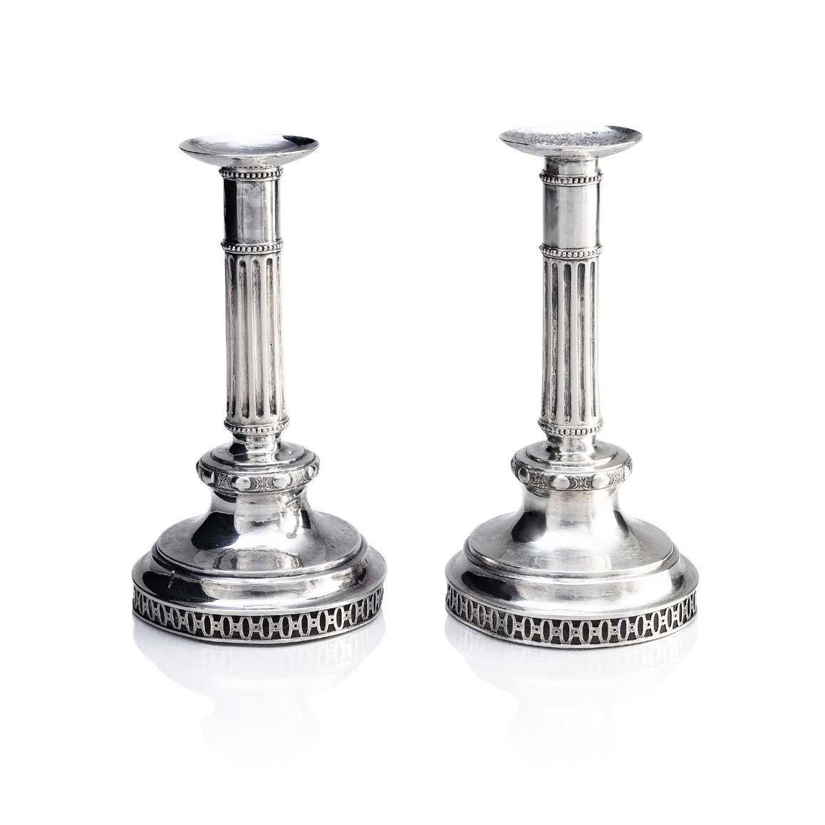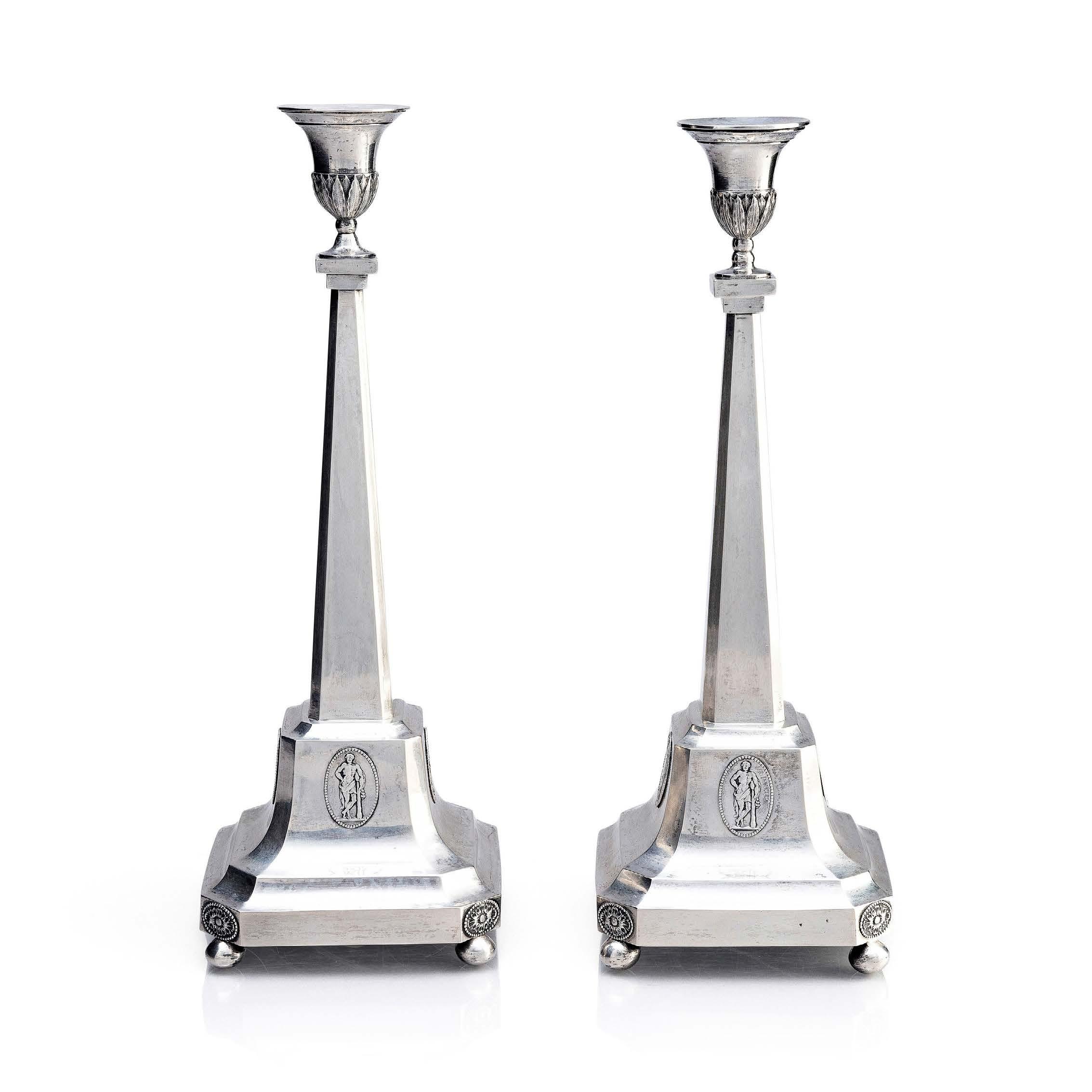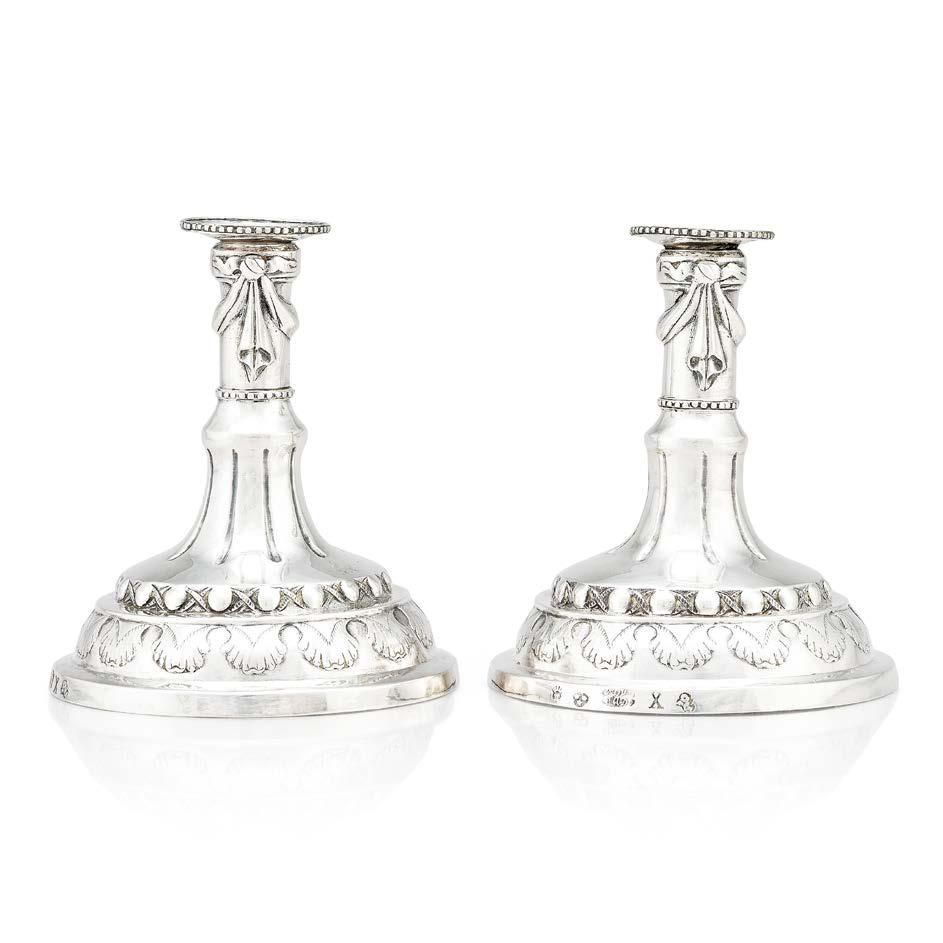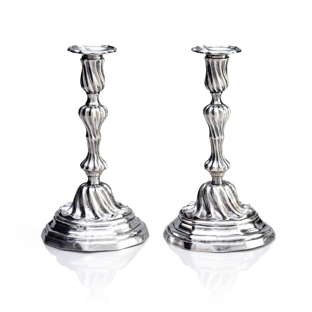 469. Kandelabrar, ett par, tvåarmade, silver, W.A. Bolin, Stockholm 1948.