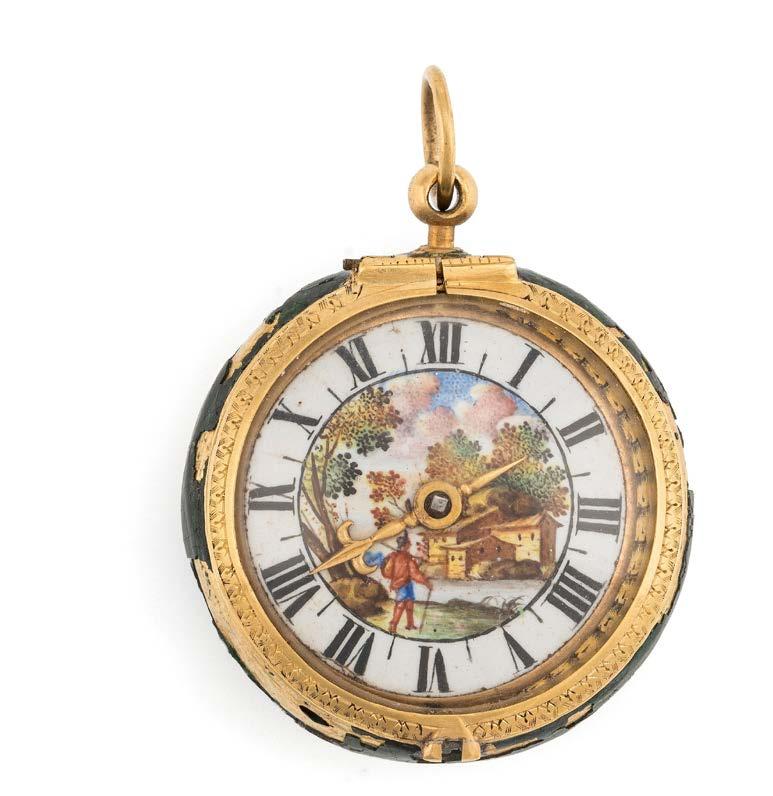 478. Dosa, 18K guld med miniatyr i gouache inuti locket, 1700-tal, såld av Bolin & Jahn, S:t Petersburg, ca 1840.
