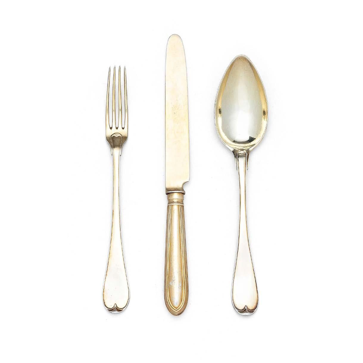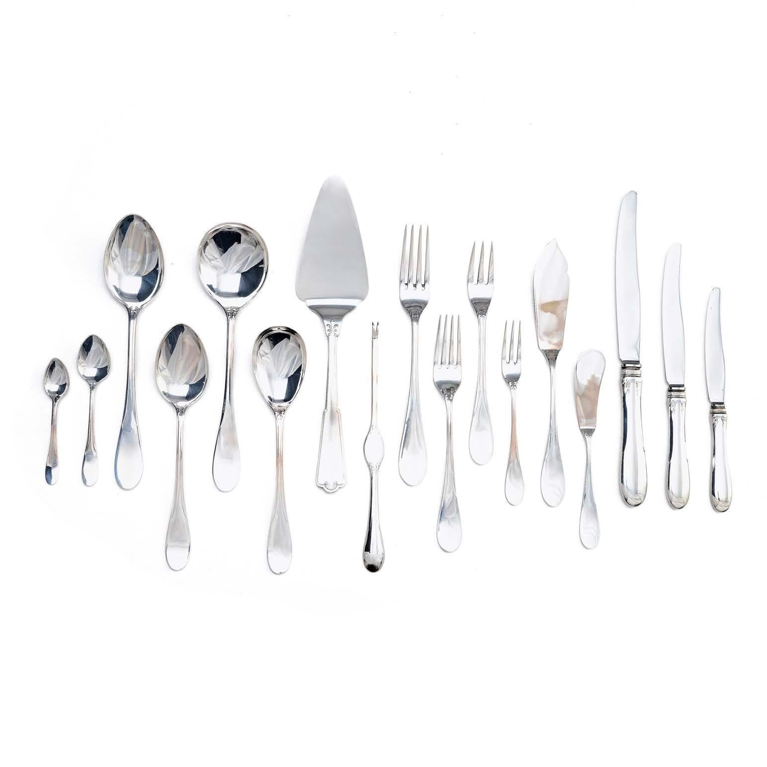 470. Matsilveruppsättning, modell ”I”, 160 delar i mahognyschatull, W.A. Bolin, Stockholm 1948–67.