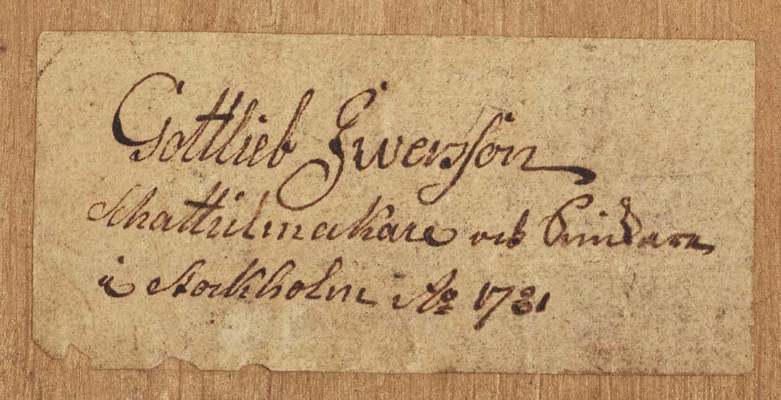 Proveniens: Tidigare i samlingarna på Hedensberg, Tillberga socken, Västmanland.