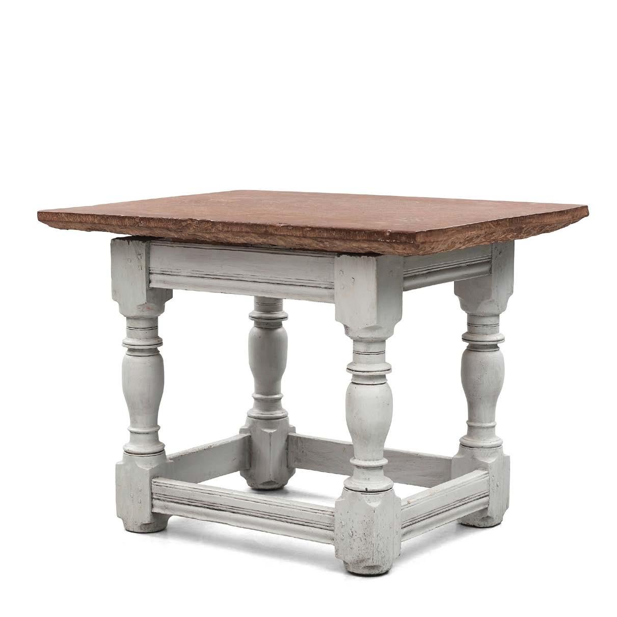 Samkomponerad front med inläggningar av kannelerade fält ovan dubbla ymnighetshorn, sidostycken med draperade lagergirlander. Tre lådor. Skiva av grå kalksten. Längd 93, bredd 47,5, höjd 84 cm.