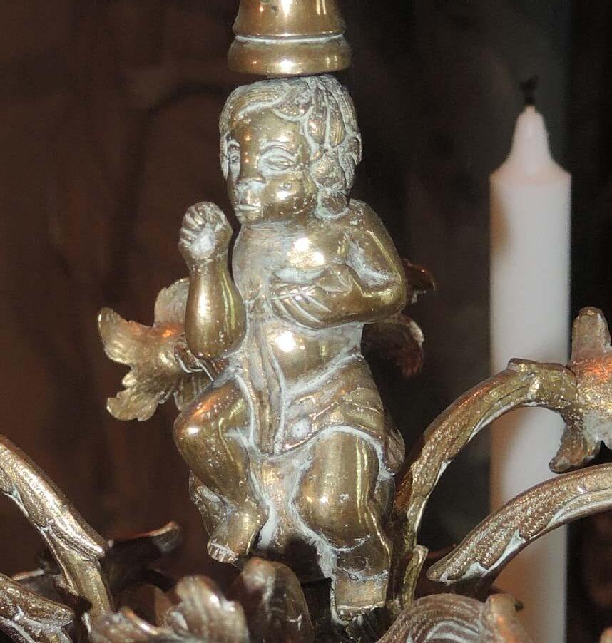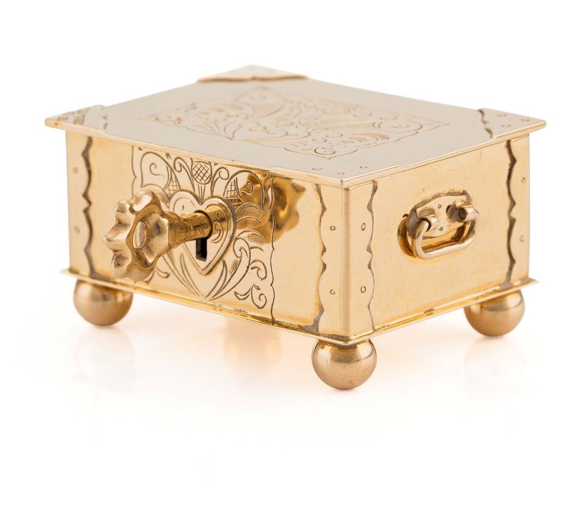 Beslag och listverk av förgylld mässing. Rak form med snedställda hörn.