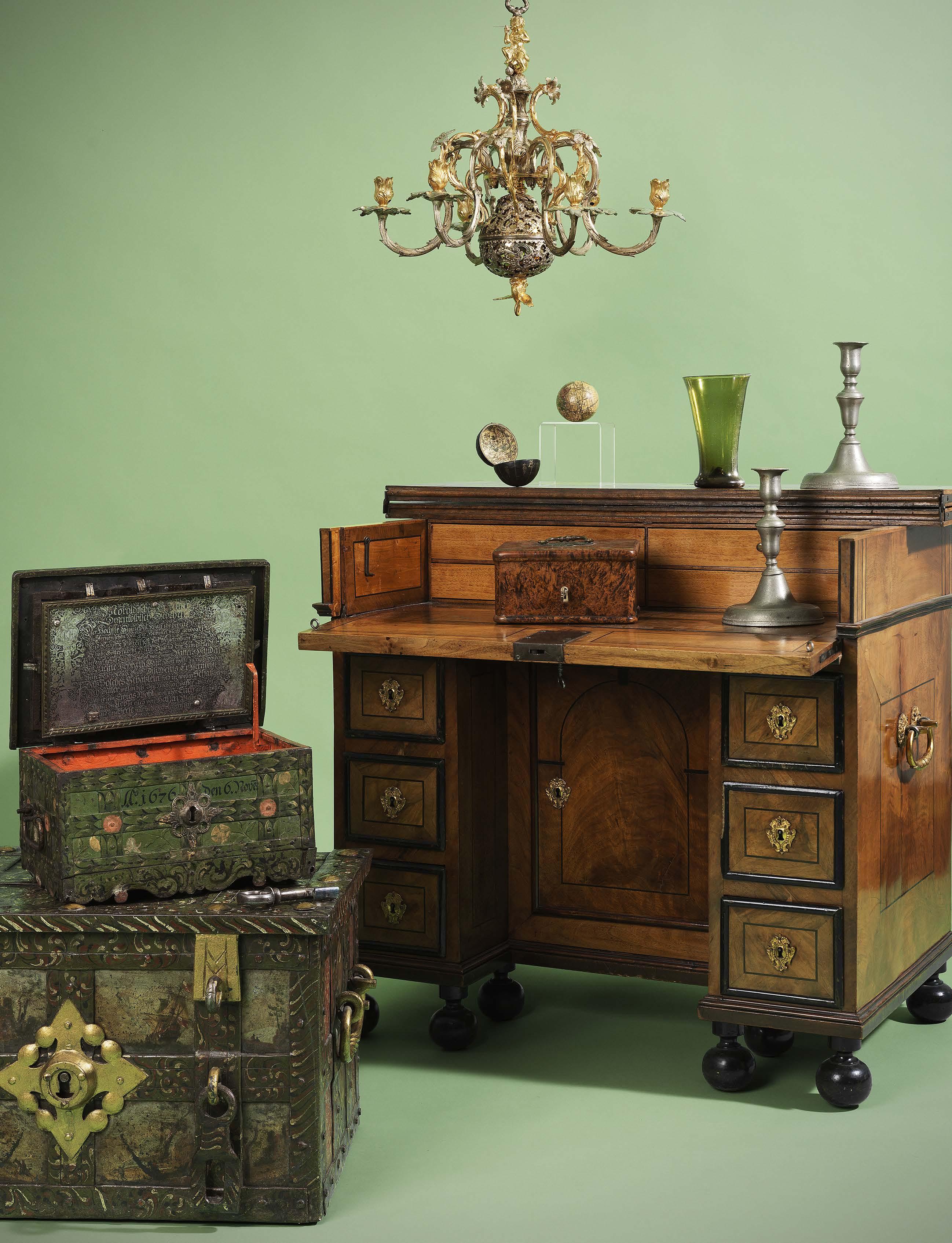 Omslag: 107. Ljuskrona, Carl Edbergs Mästerstycke, Stockholms gelbgjutarämbete, cirka 1755, Rokoko. Baksida: 182. Reseglob med etui, Johann Baptist Homann, Nürnberg, cirka 1710.