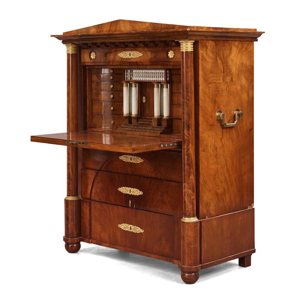 4. Skrivskåp, tillskrivet Lorentz Wilhelm Lundelius (mästare verksam i Stockholm 1818–57), Empire.