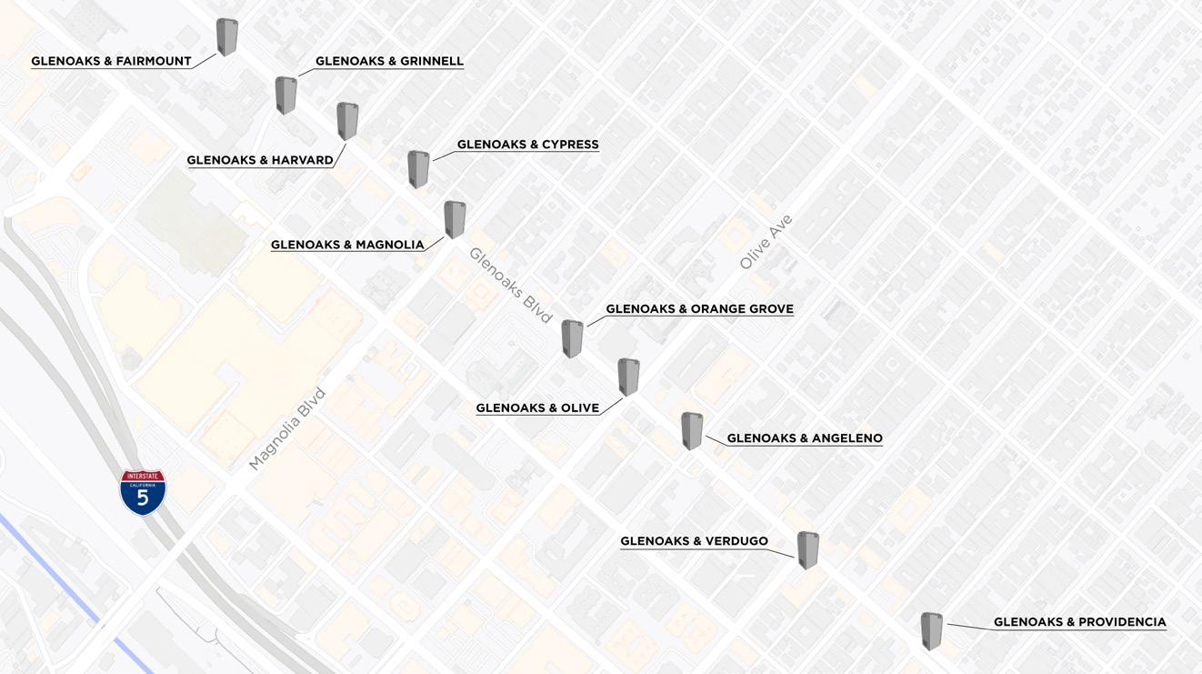 Ten (10) utility boxes located on Glenoaks Blvd. will be painted by selected artists. See the map on page 4 for locations.