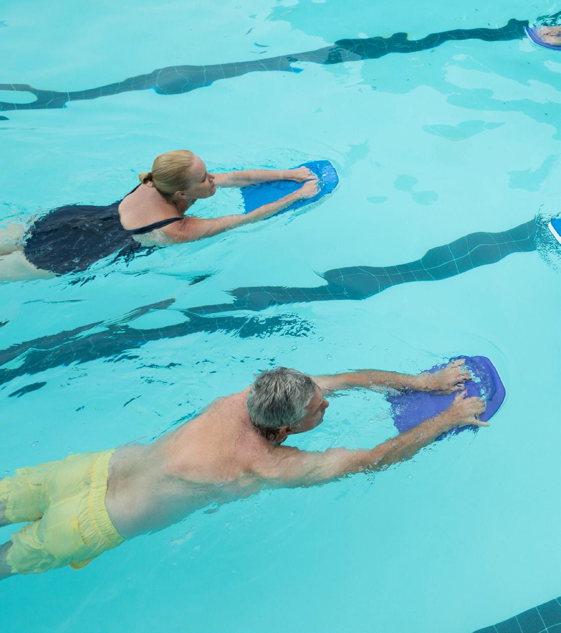 This safe, fun, and effective workout uses water exercises to build muscle and reduce body fat with little or no impact to joints, all done in a heated pool to fun and energizing music. The water offers a heavier resistance than air, so participants can experience a challenging workout while the buoyancy takes away most or all of the impact to bones and joints.