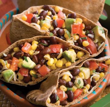BLACK BEAN AND CORN PITAS WITH AVOCADO