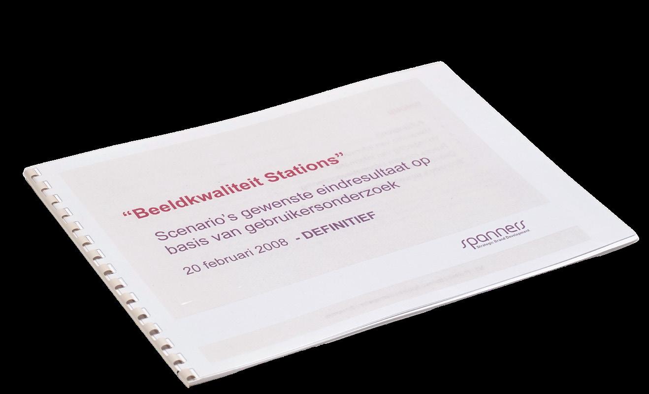 en de toekomst: jouw wereld. Gerben Hellinga had veel marketingervaring, NS-bedrijfskennis en kon als geen ander officiële stukken schrijven. Hij was onze slimme en soliede factor. Geertje kwam terug van Scan. Ze had voor dit project, dat uiteindelijk uit zou groeien tot Spoorbeeld, een enorme toegevoegde waarde. Ze bracht veel kennis en ervaring mee over ‘merkdenken’. Ikzelf bracht mijn kennis van 2D en 3D ontwerptrajecten mee, een groot in en- extern netwerk, een goed overzicht van alle relevante regelgeving én ervaring binnen een breed scala van projecten. Later werden ook externe adviseurs en experts benaderd, waaronder Fennemiek Gommer. Ook Sinot Design mag voor de uitwerking van de identiteitscirkel niet onbenoemd blijven, net als bureau Qua voor de positionering van stations.
