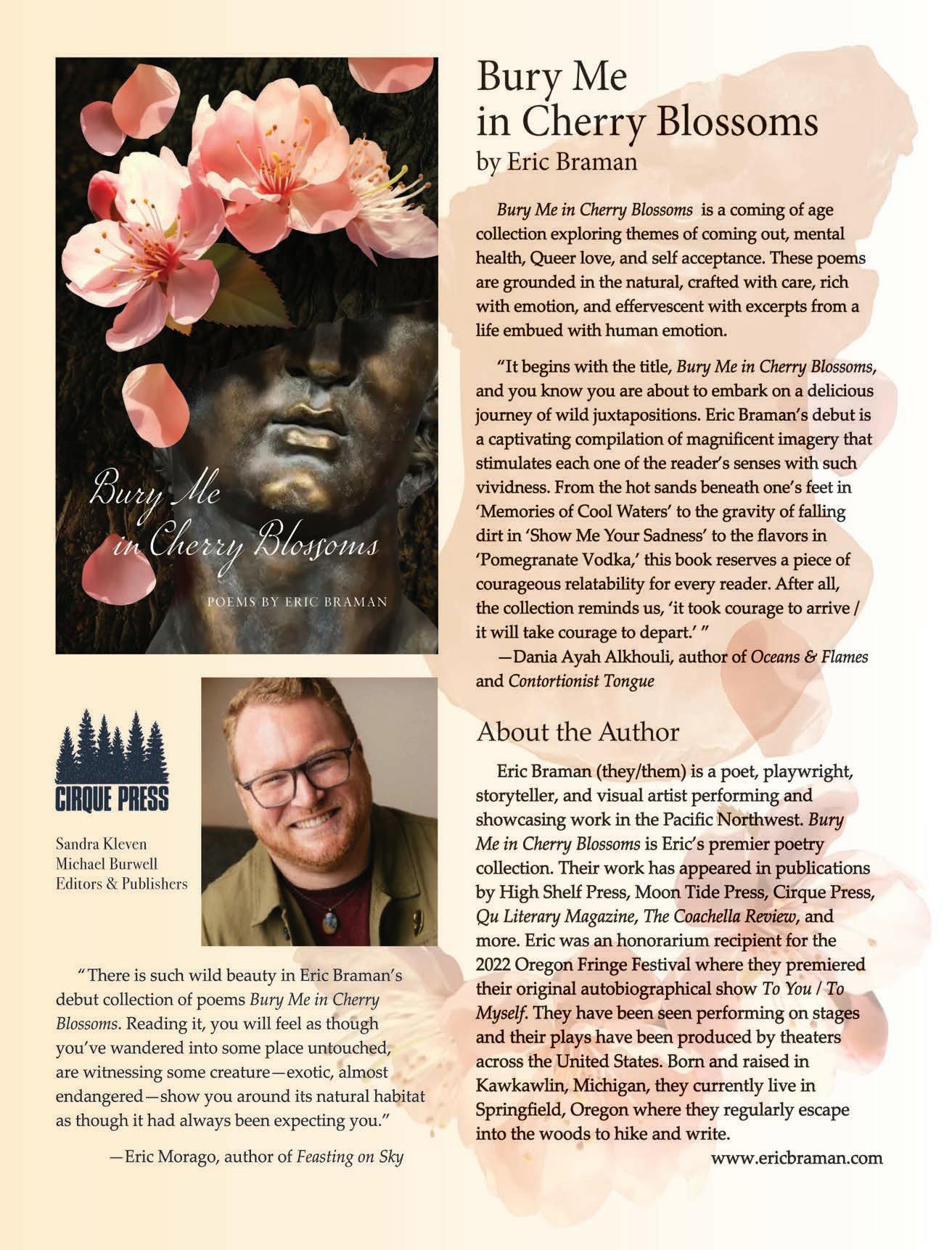 Bury Me in Cherry Blossoms Let yourself be healed. Let yourself be broken. Let yourself know unconditional love of this poet scratching at your door.