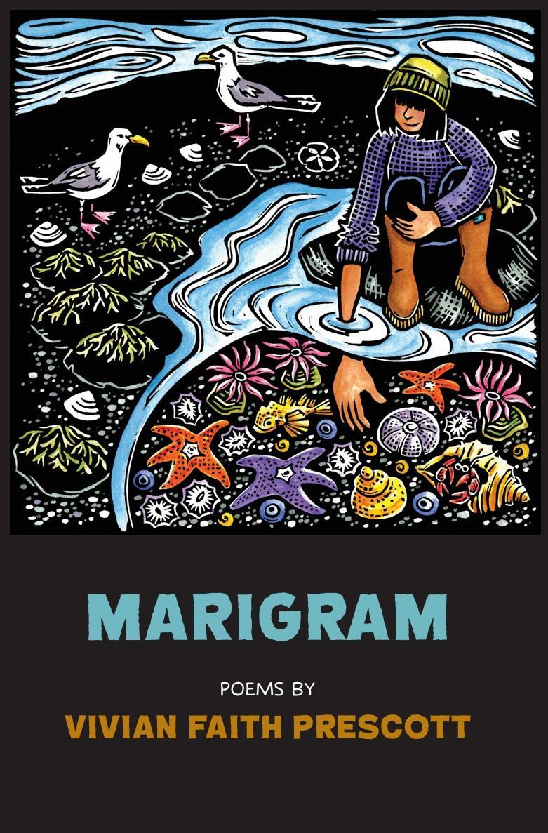 “Eye sockets of a whale, salmonberries, rocky shoreline and seawall, crows and goldeneye, moon and tides, barnacles, dogwinkle, and limpet, krill and kelp, deer, even a mink… there is such rich imagery in Vivian Faith Prescott’s Marigram that I feel physically present…