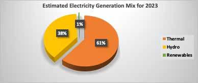 dispatch conservatively throughout the year, they may not draw down close their minimum operating levels (MOL) to a ect the sustainability of operations this year, and for subsequent years in the likely event of low in ows. In spite of IES’ anticipation in growth from hydropower generation, the Public Utility Regulatory Authority (PURC) in its recent tari review used an assumption of 26.11% and 73.89% for hydro and thermal respectively, in the electricity generation mix for 2023. That assumption to the IES, amounts to given priority to thermal power generation over hydro, given that water elevations for Bui and Akosombo generating stations (GS) have improved, and capable of producing more power in 2023 than in previous years.