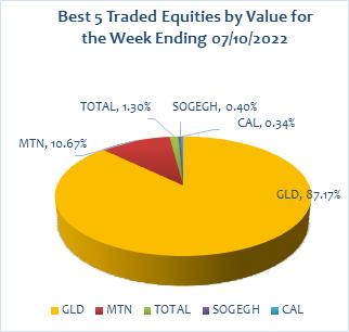 MTN dominated volume of trades whiles New Gold dominated value of trades for the week, accounting for 82.05% and 87.17% of shares traded respectively.