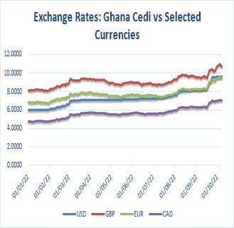 The Cedi again weakened against the Canadian Dollar for the week. It opened at GH¢6.9969/C$ but closed at GH¢7.0364/C$, reflecting w/w and YTD depreciations of 0.56% and 32.61% respectively. This compares with YTD depreciation of 3.83% a year ago.