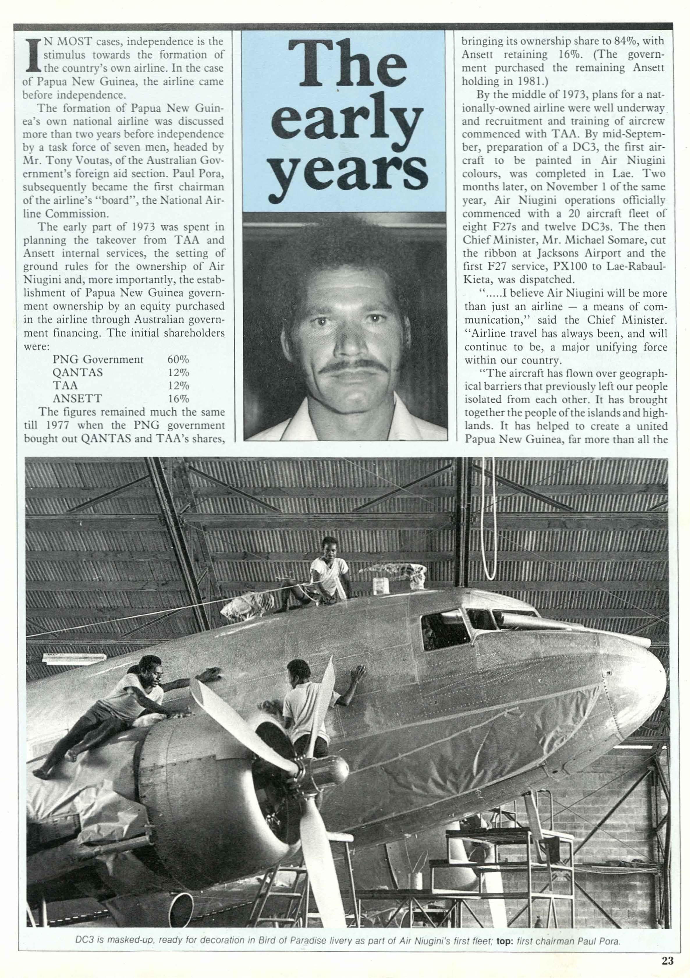 Cover: Aloft, a modern jet aircraft; below, a timeless village. An Air Niugini F28 photographed by John Devereux over a ridgetop settlement near K wikila, south-east of Port Moresby, symbolises both advancement in Papua New Guinea and retention of traditional life.
