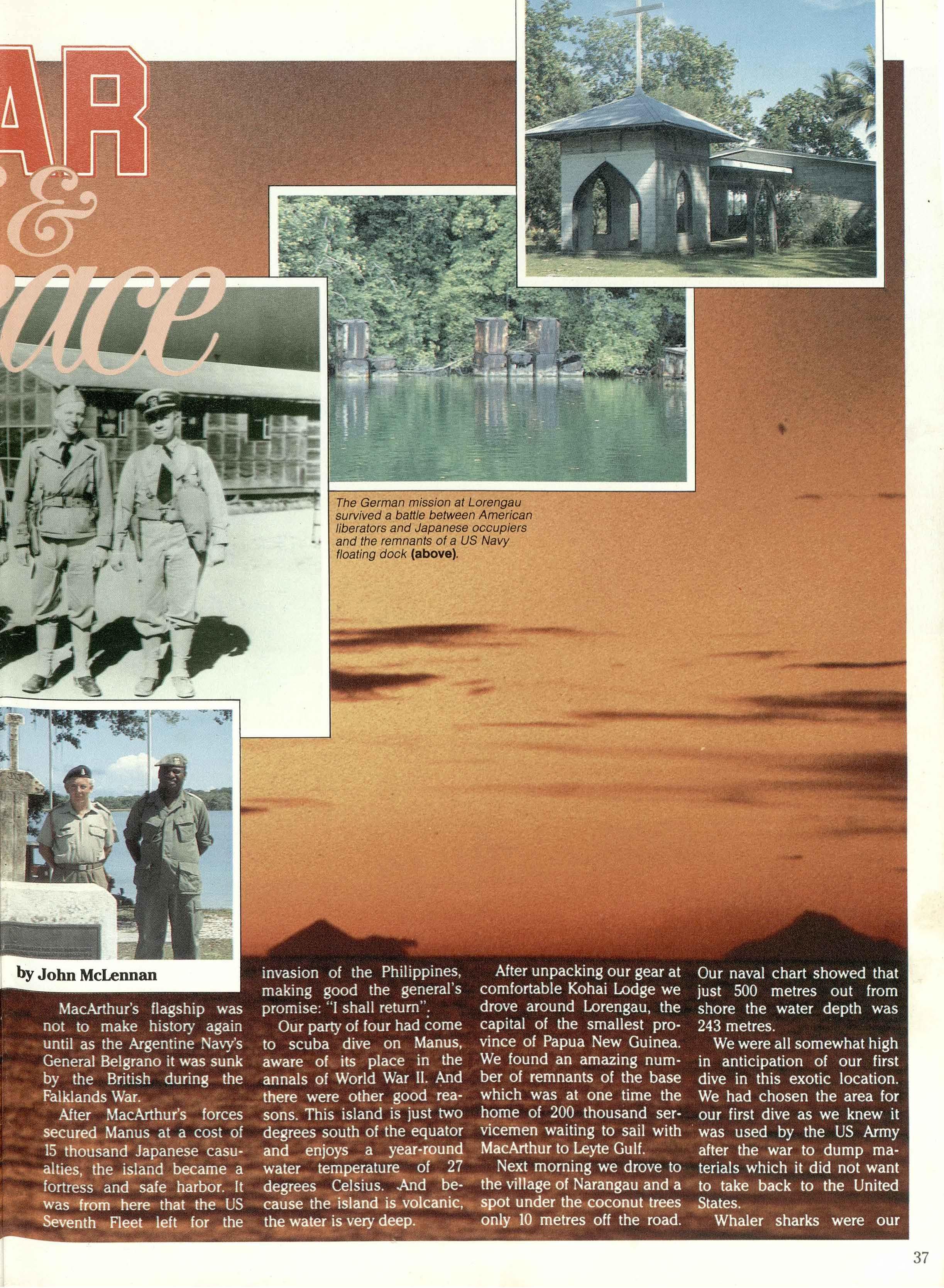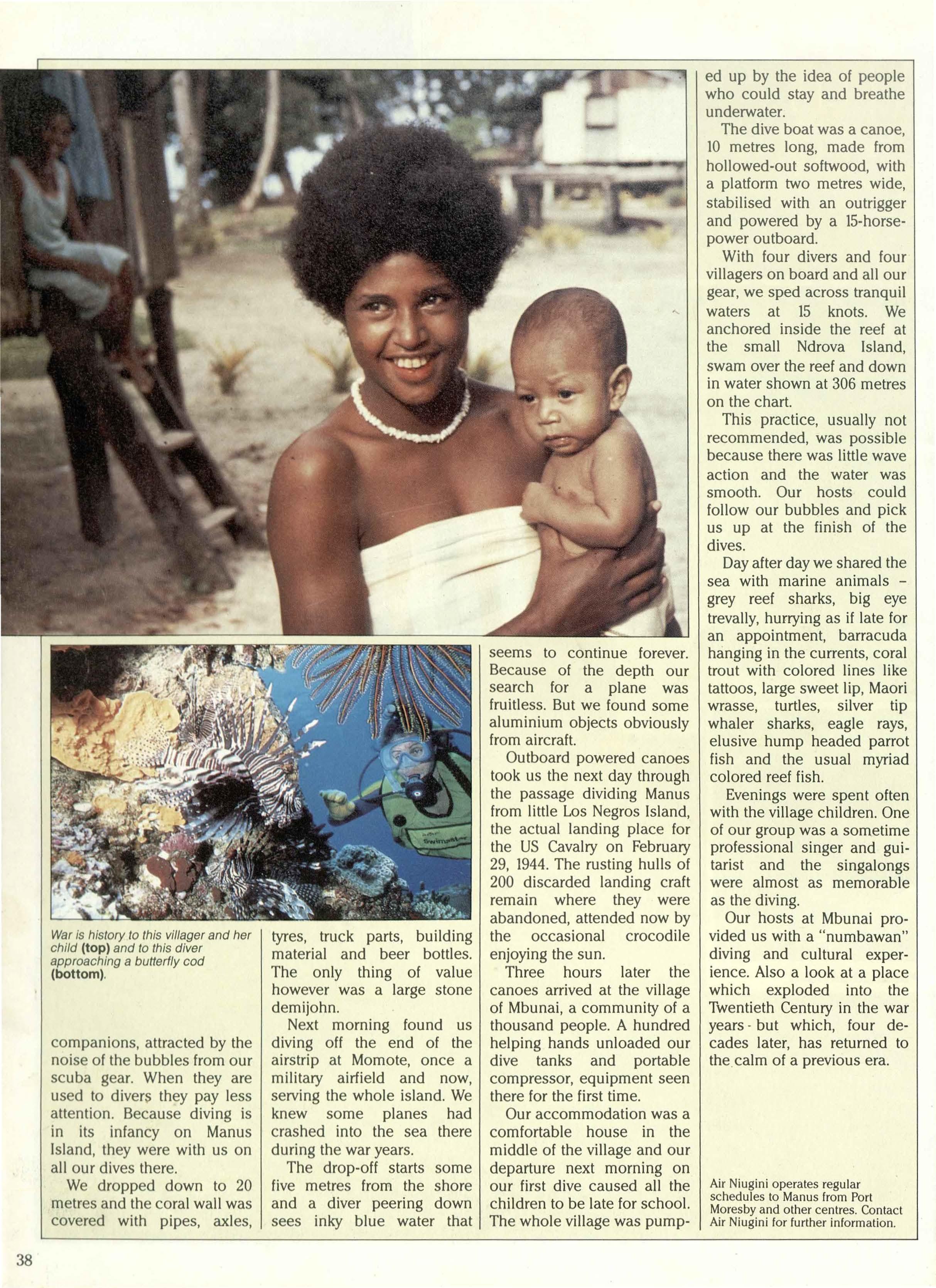 Our hosts at Mbunai provided us with a "numbawan" diving and cultural experience. Also a look at a place which exploded into the Twentieth Century in the war years • but which, four decades later, has returned to the.calm of a previous era.