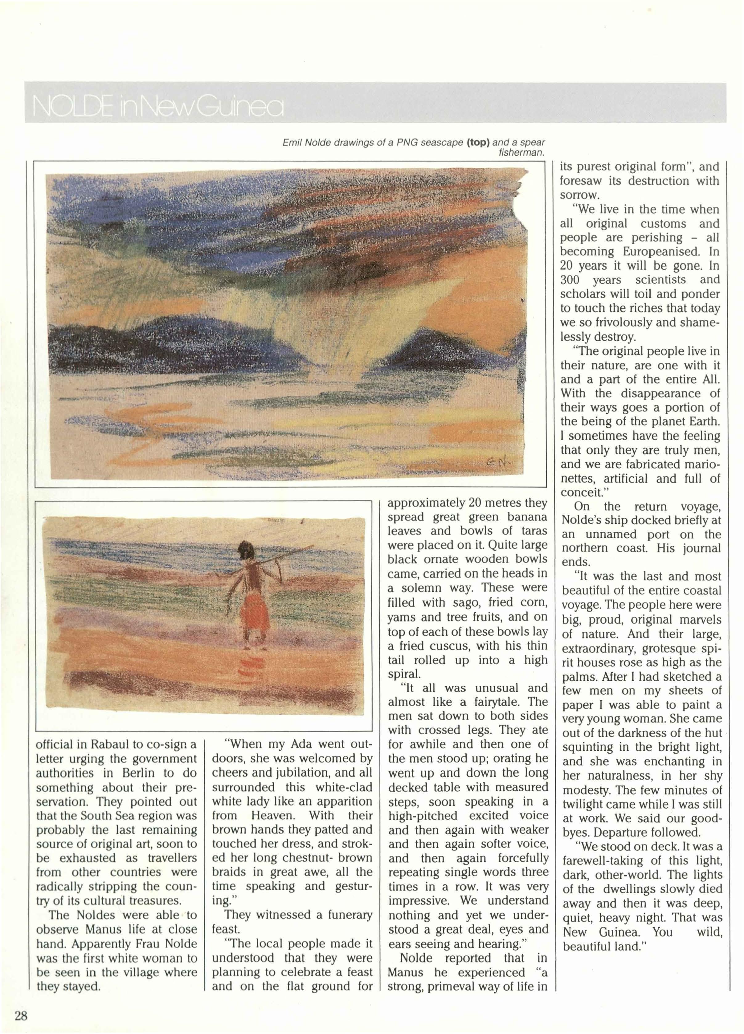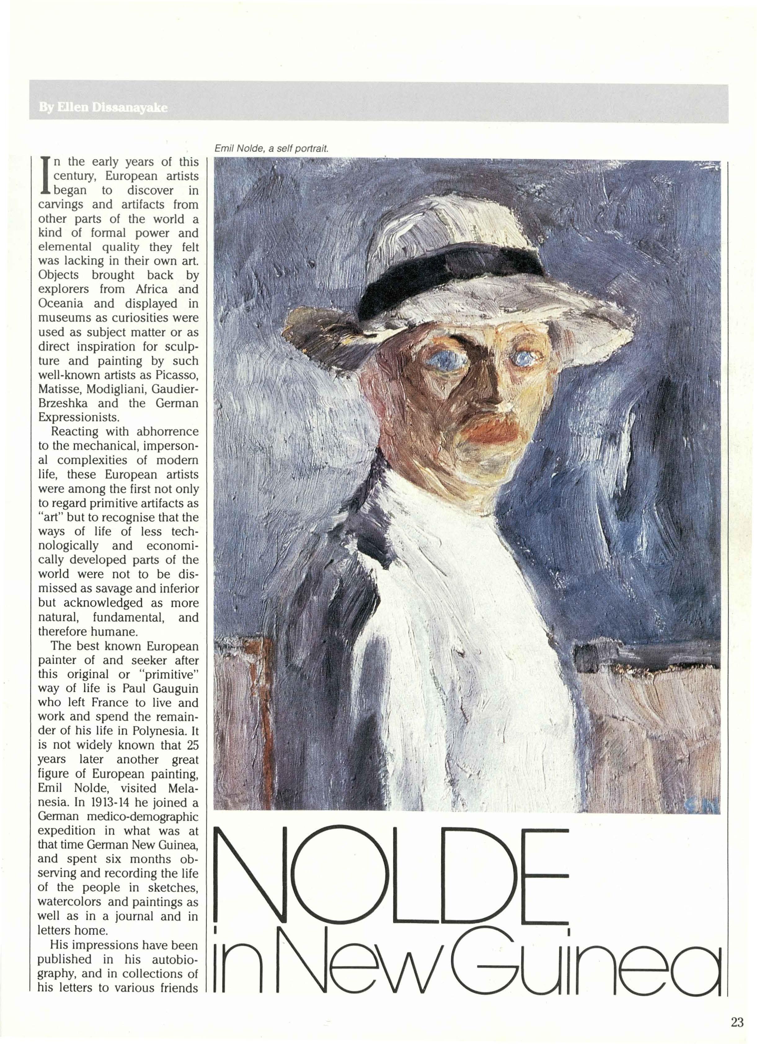 Papua New Guinea has inspired many artists from abroad, none more acclaimed than the German expressionist Emil Nolde. Yet his visit to our shores before World War I is not widely known. We are pleased to bring you his story in this issue.