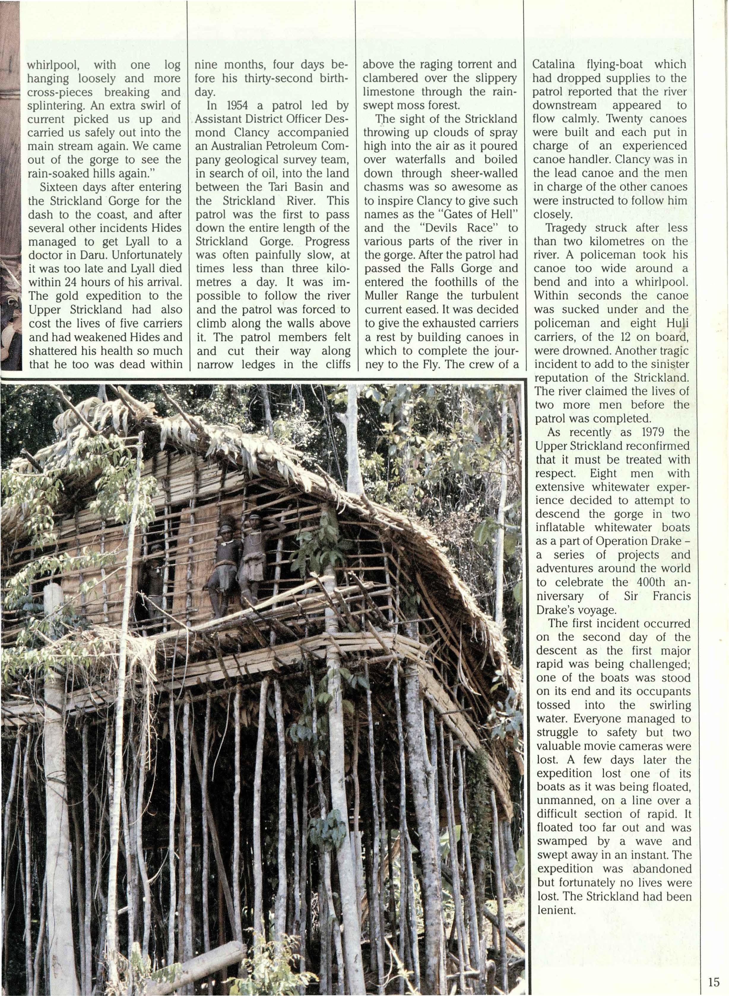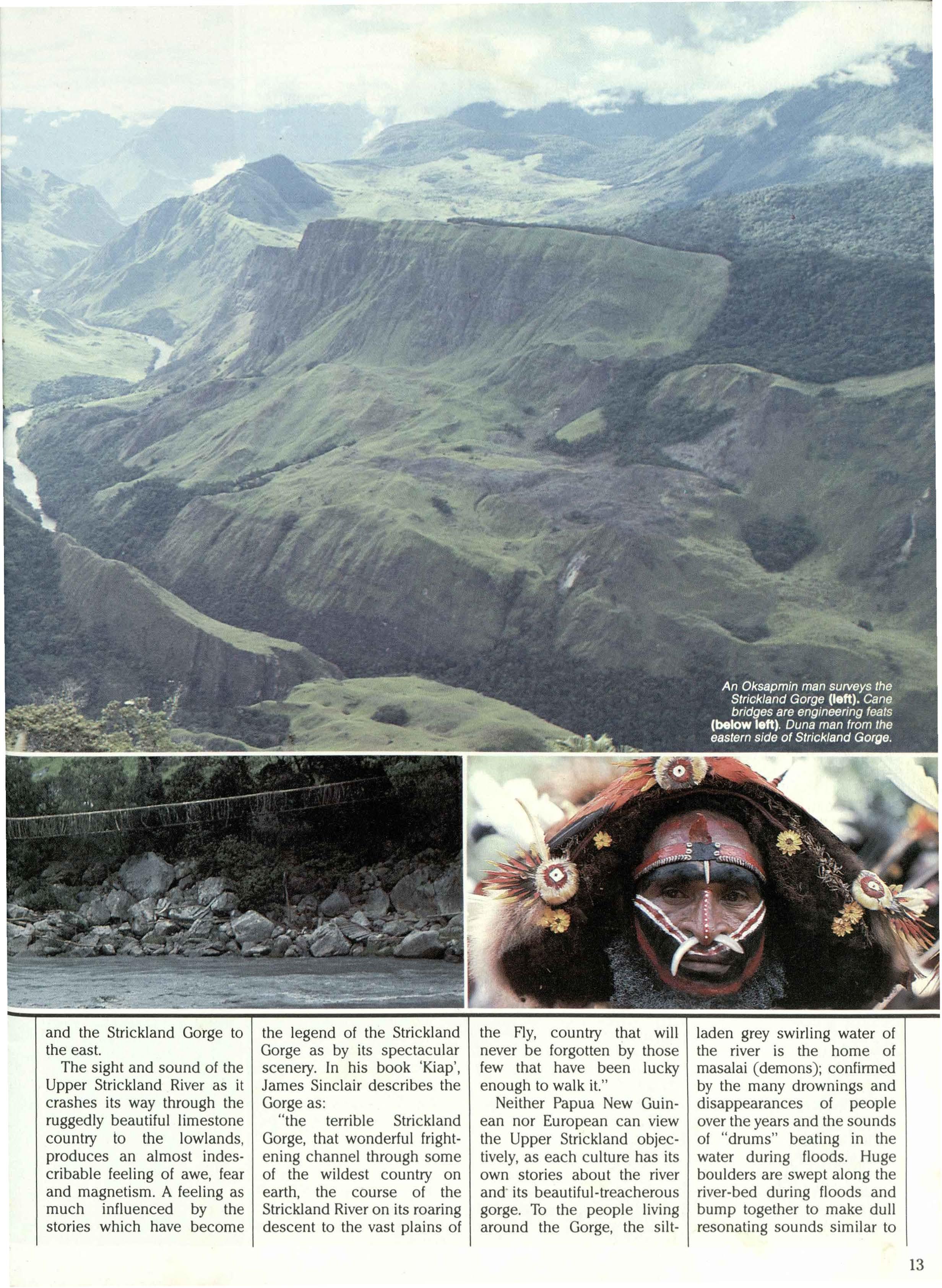 the legend of the Strickland Gorge as by its spectacular scenery. In his book 'Kiap', James Sinclair describes the Gorge as: