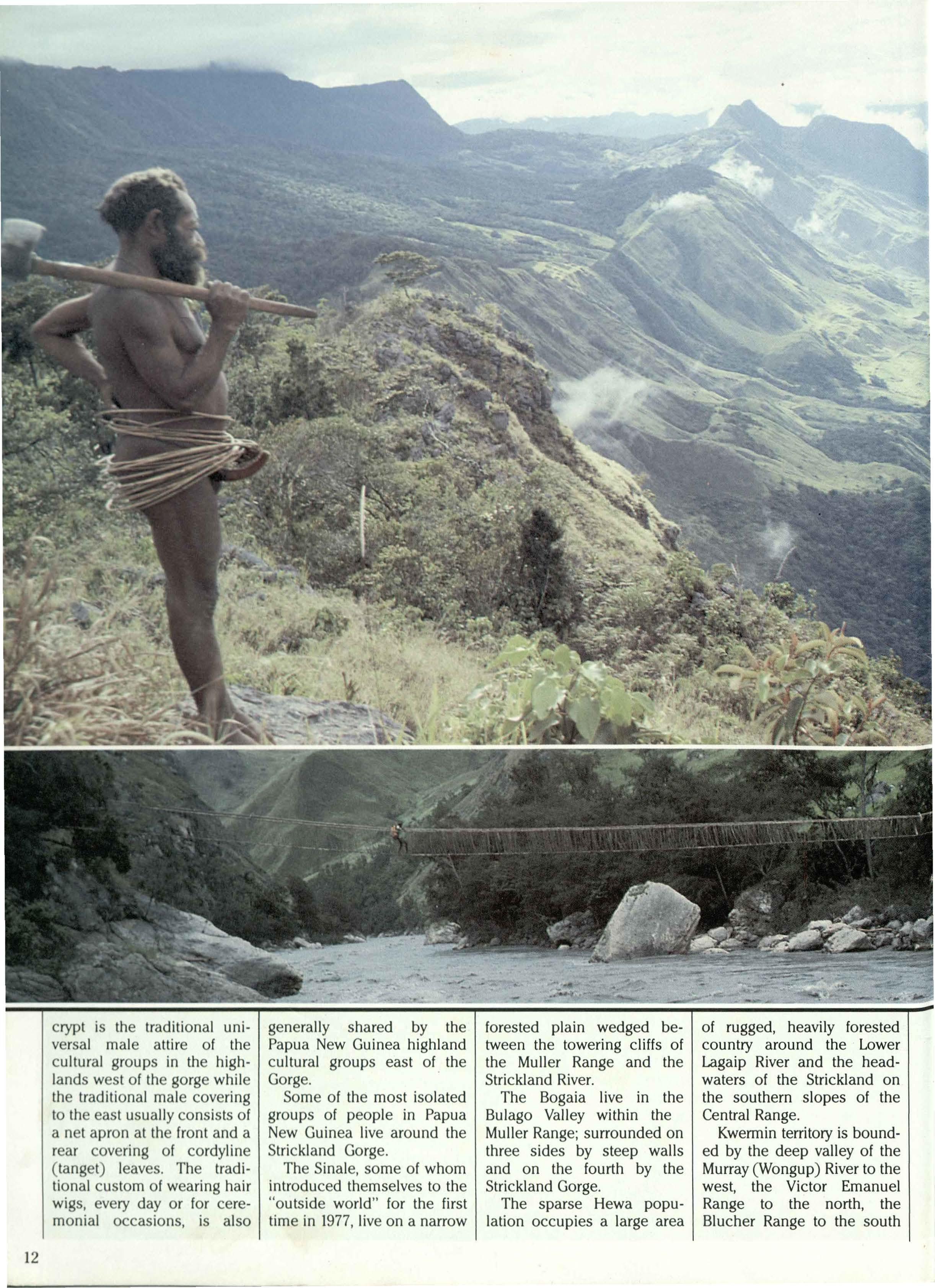 "the terrible Strickland Gorge, that wonderful frightening channel through some of the wildest country on earth, the course of the Strickland River on its roaring descent to the vast plains of