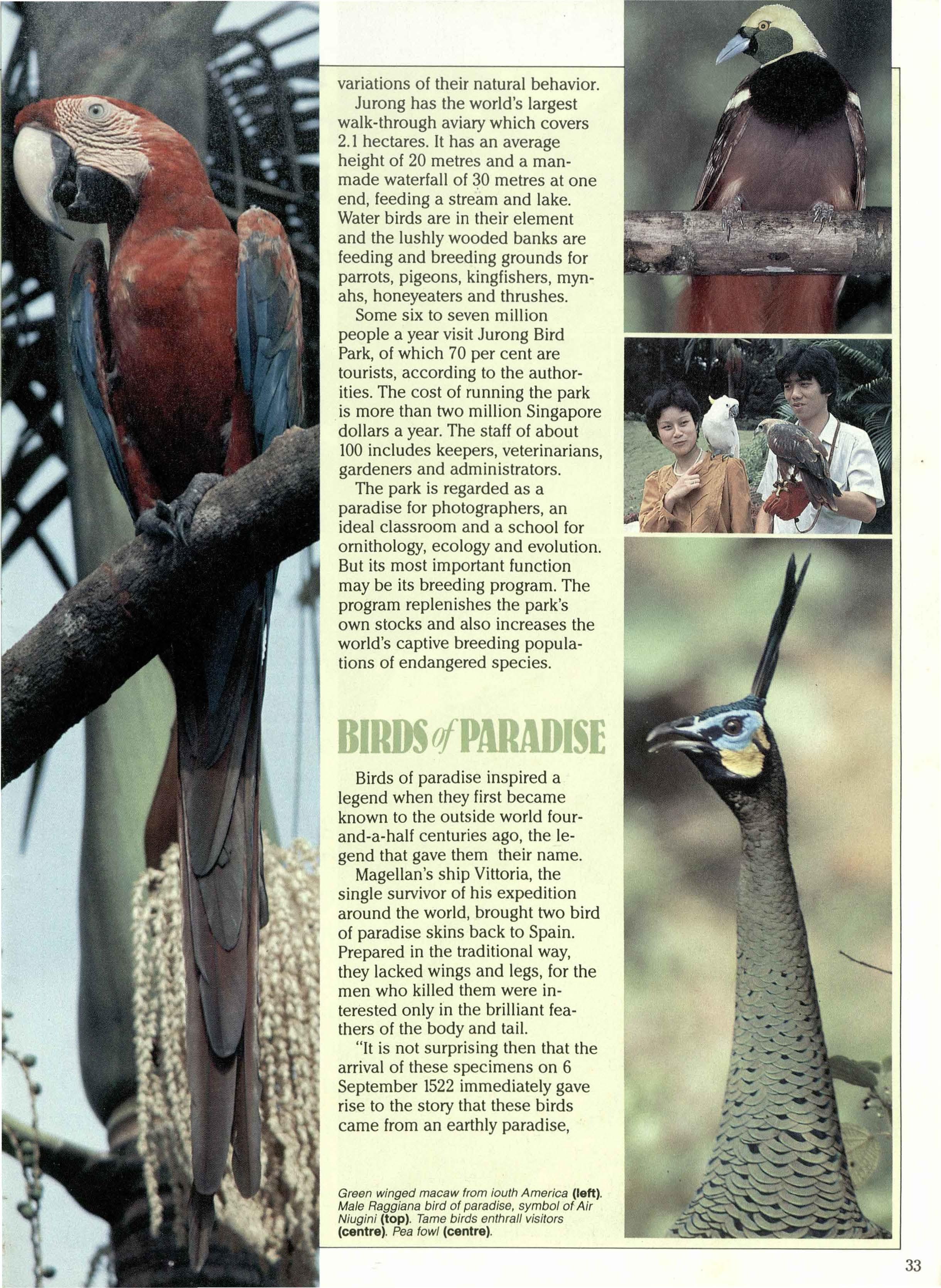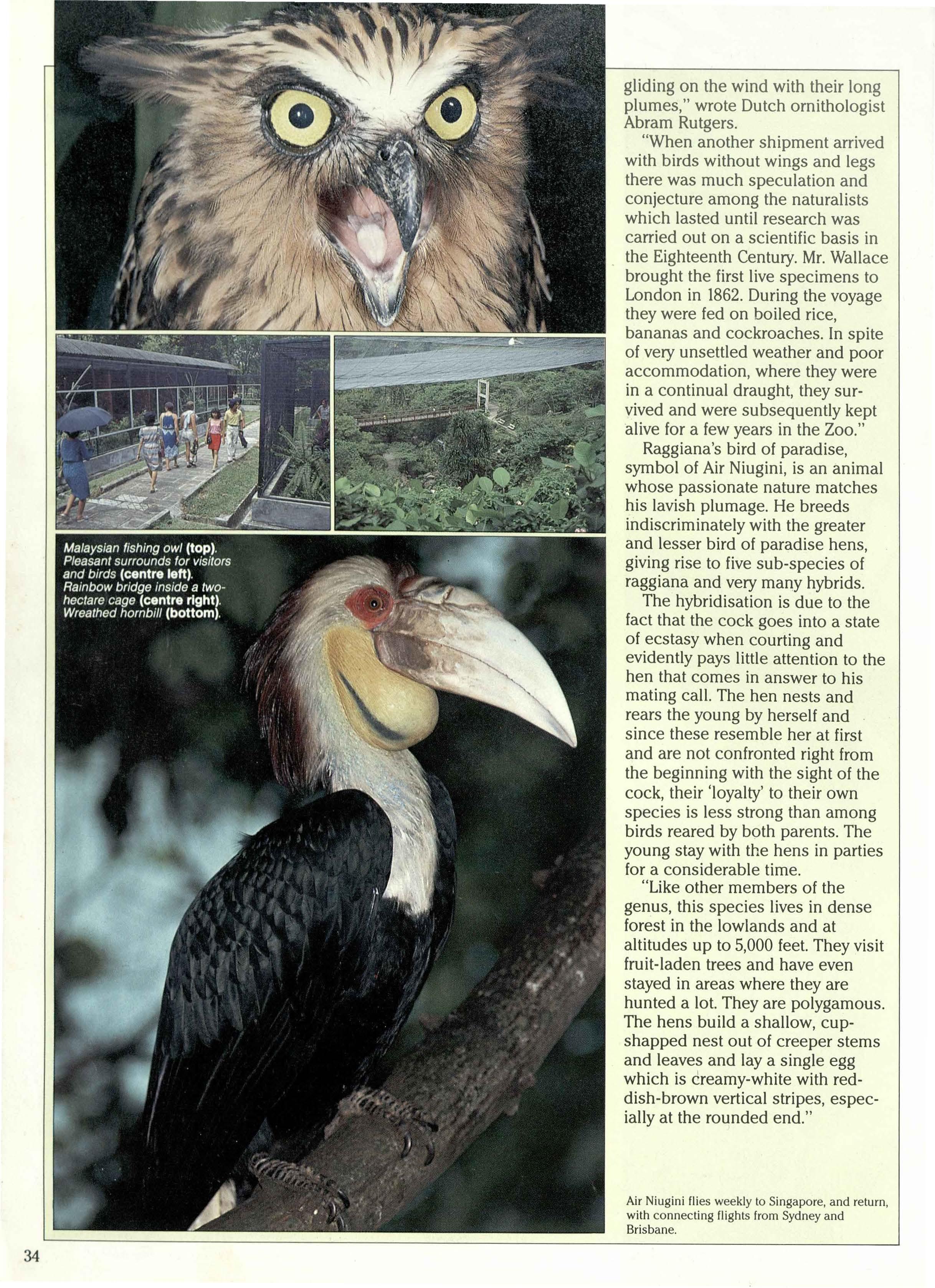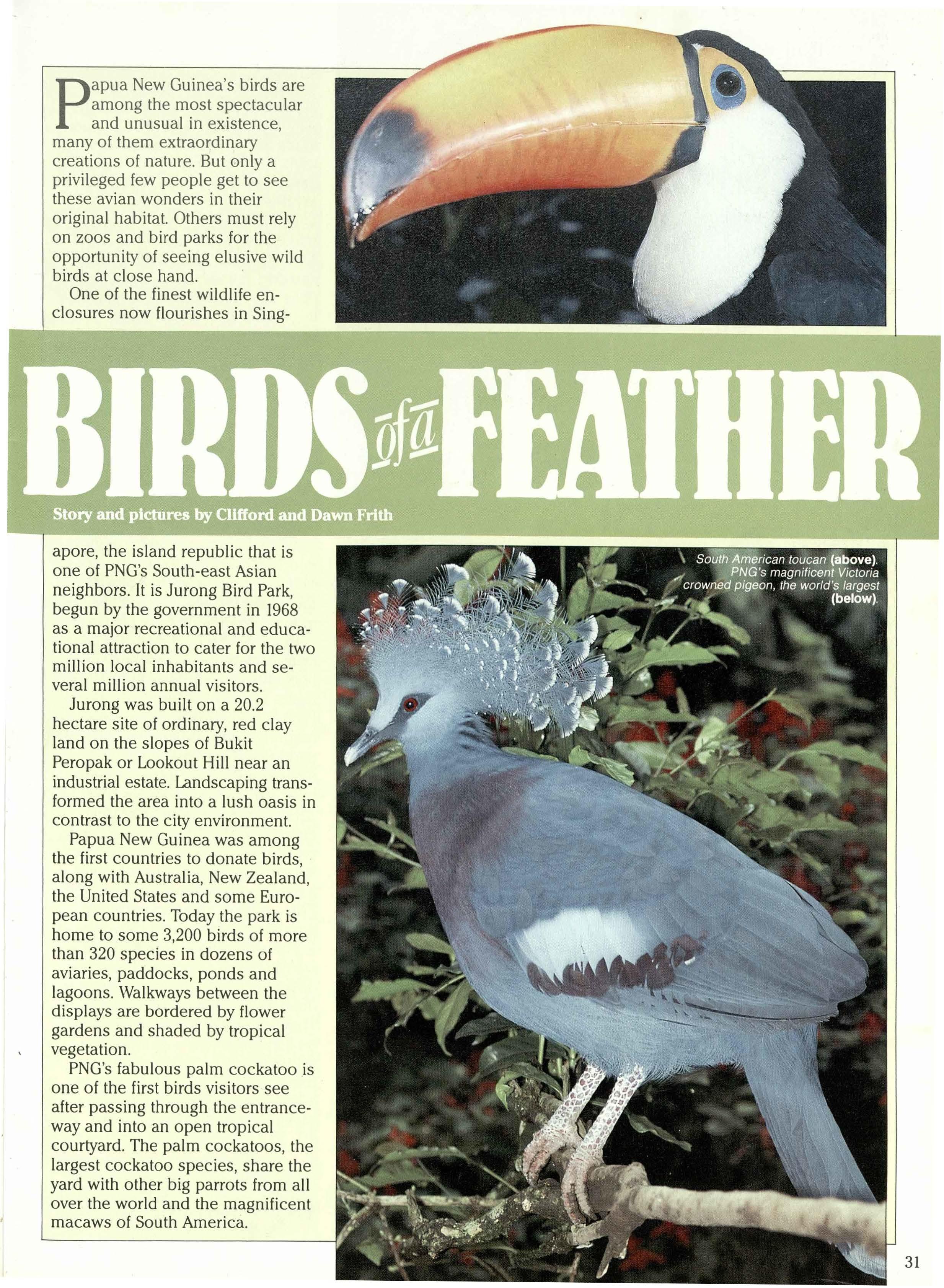 Papua New Guinea's birds are among the most spectacular and unusual in existence, many of them extraordinary creations of nature. But 0nly a privileged few people get to see these avian wonders in their original habitat. Others must rely on zoos and bird parks for the opportunity of seeing elusive wild birds at close hand.