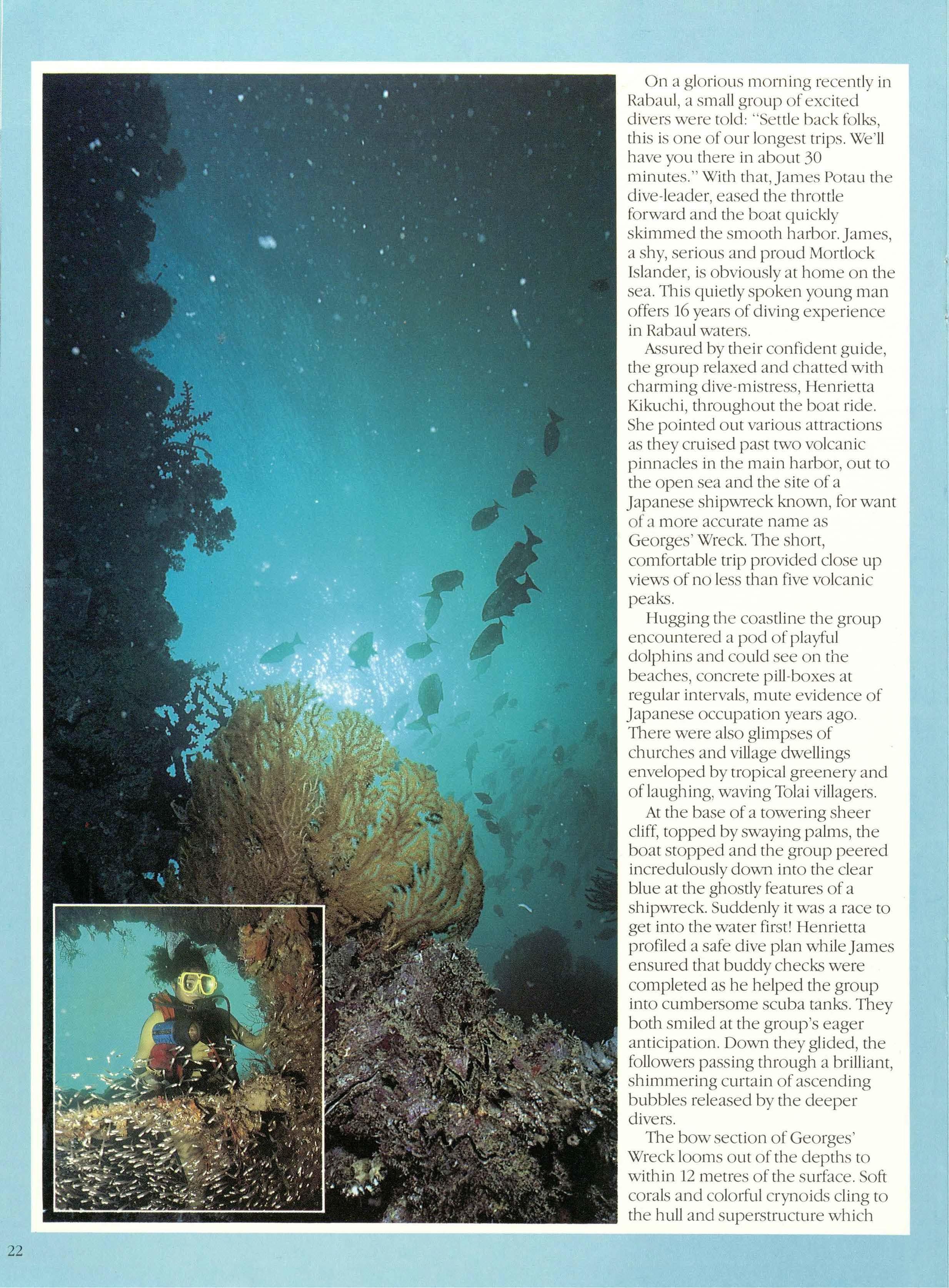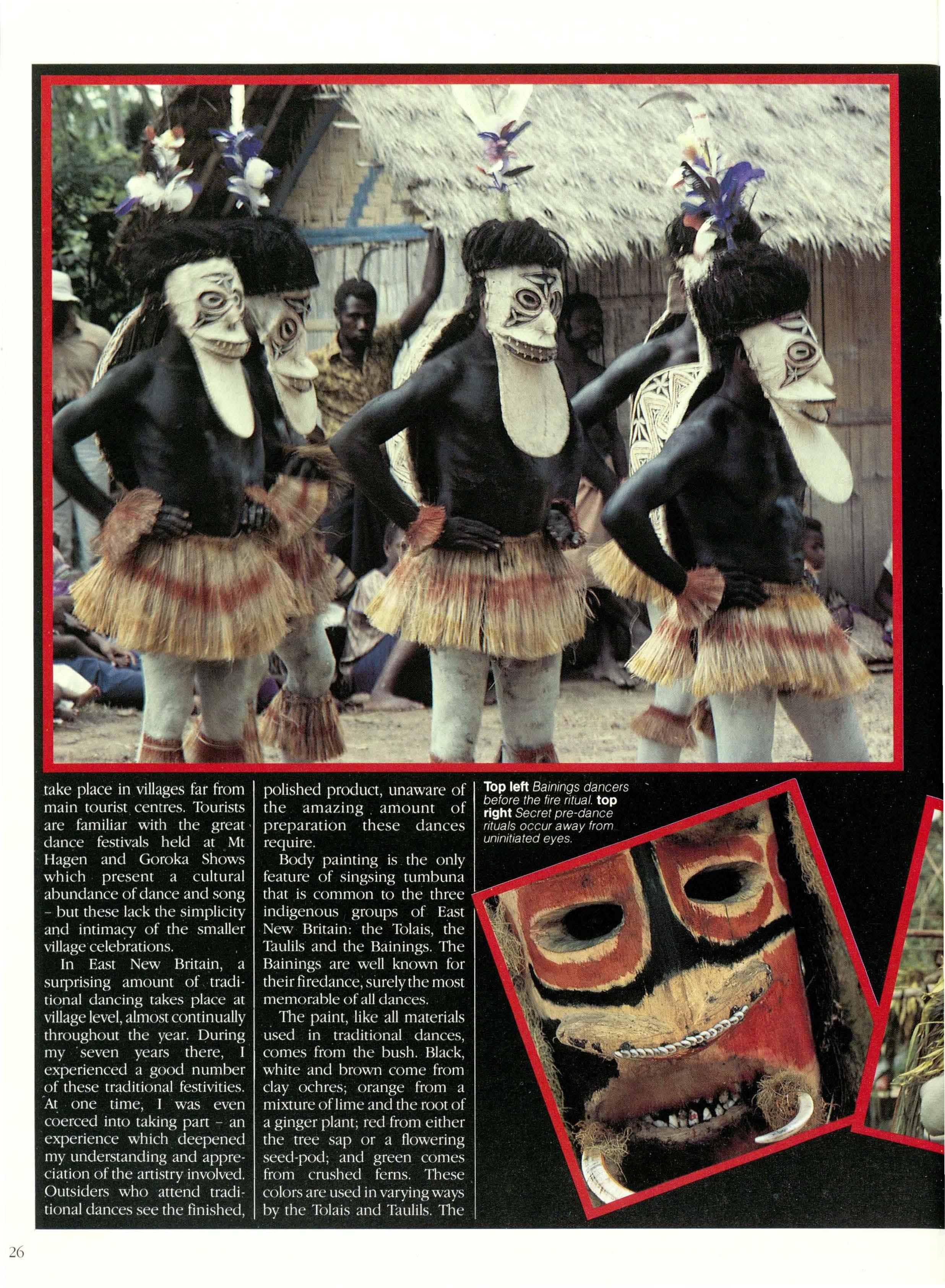 Also in this issue a scientist describes the world's largest butterfly, unique to PNG, and the steps being taken to save it from extinction. In other articles we visit the scuba diving sites of Rabaul; the dancers of East New Britain; and accompany a museum curator as she discovers the stories behind treasured artefacts.