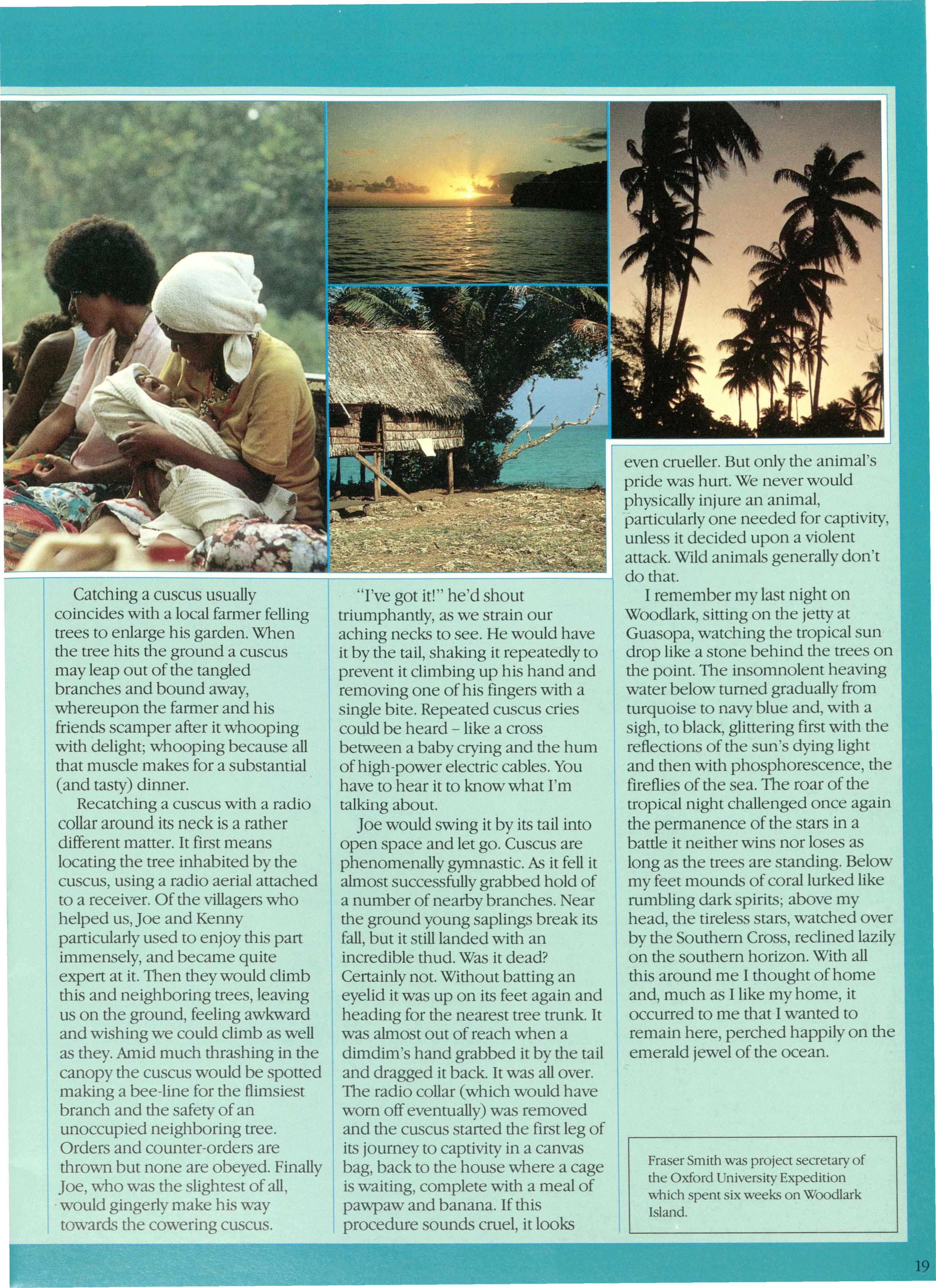 Fraser Smith was project secretary of the Oxford University Expedition which spent six weeks on Woodlark Island.