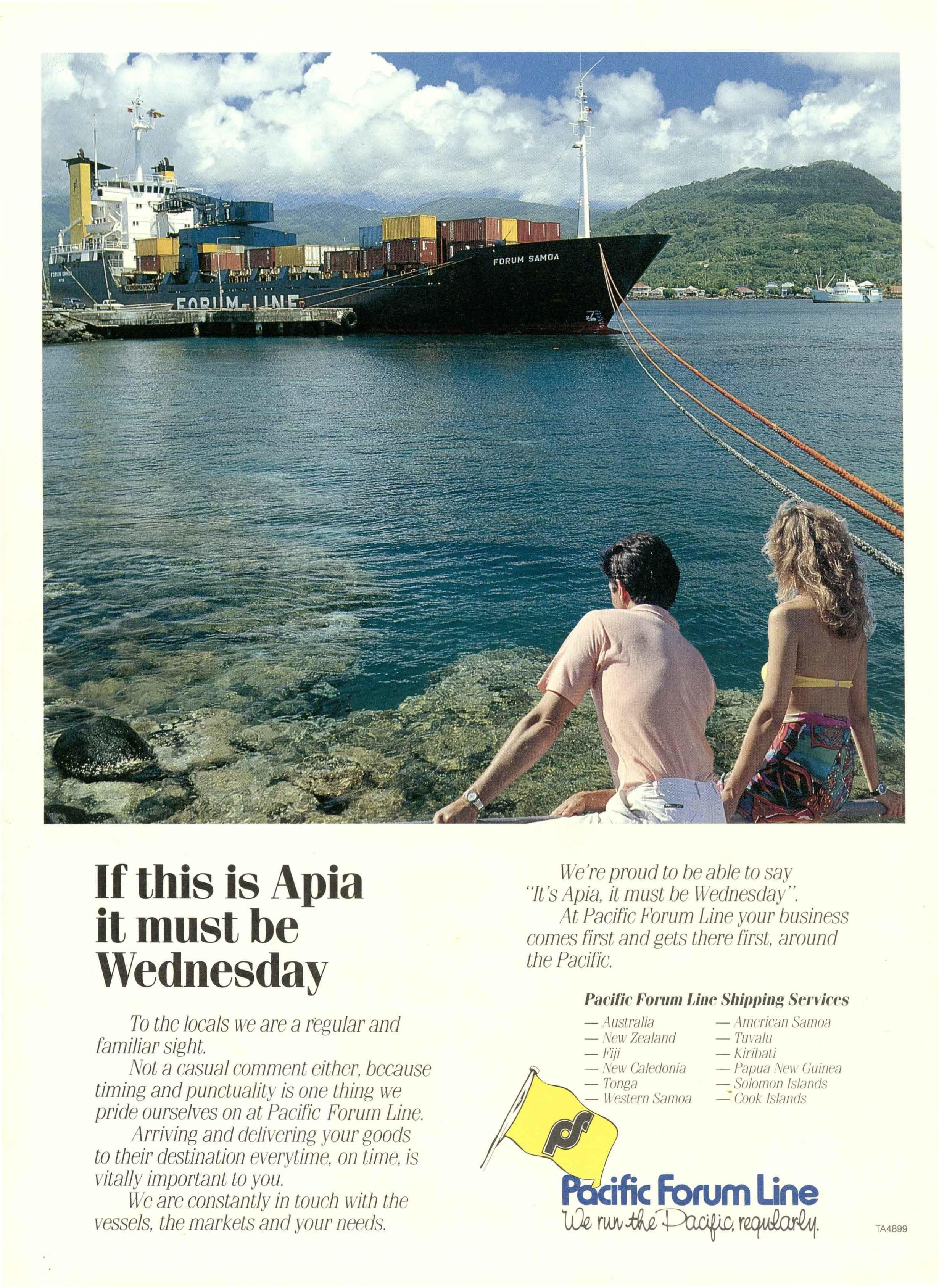 Nota casualcommenteither,because timingandpunctualityis onething we pride ourselvesonat PacificForumLine. Arrivingand deliveringyourgoods to their destinationeverytime,on time,is vJ°tallyimportantto you.