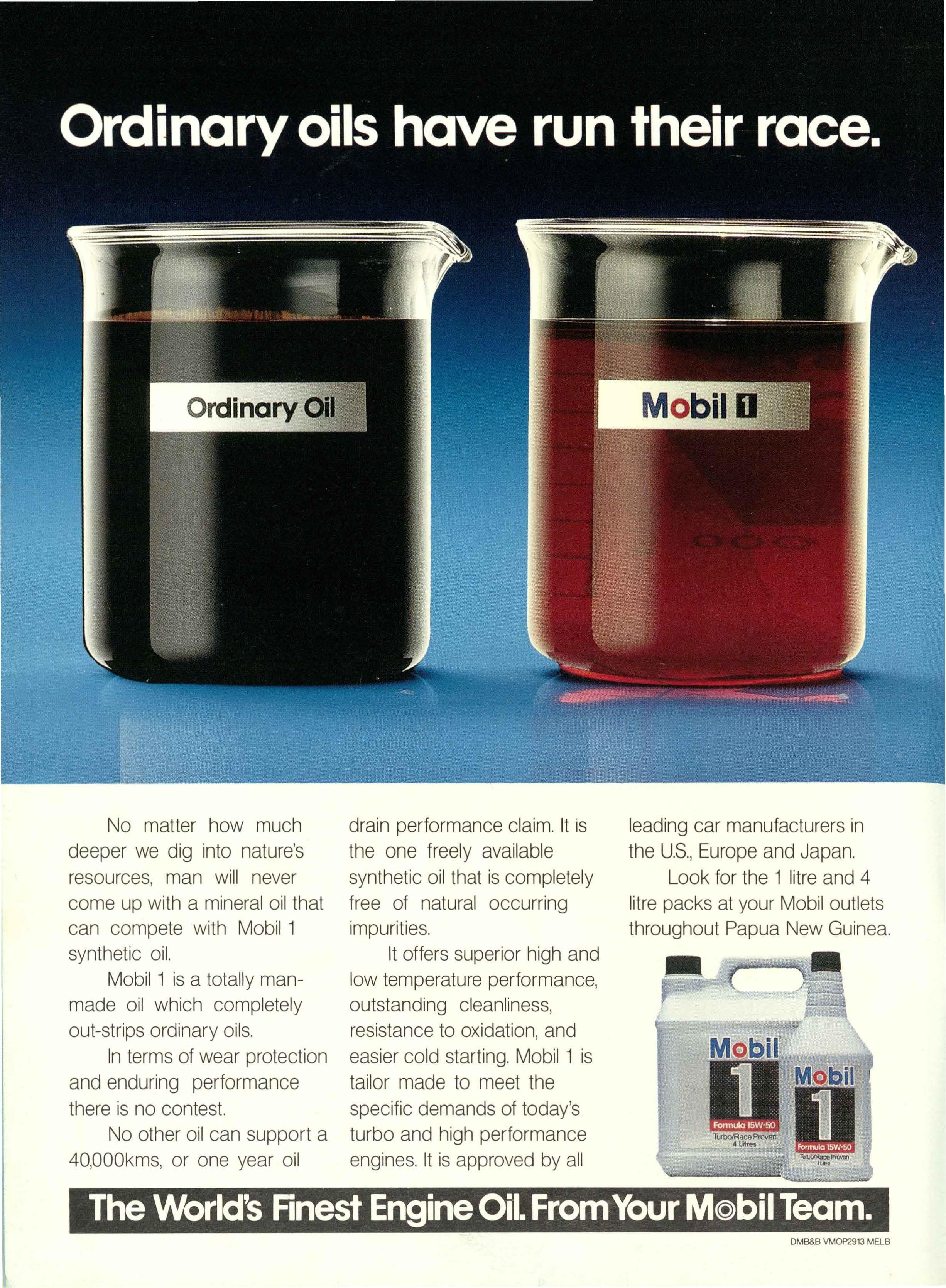 Mobil 1 is a totally manmade oil which completely out-strips ordinary oils.