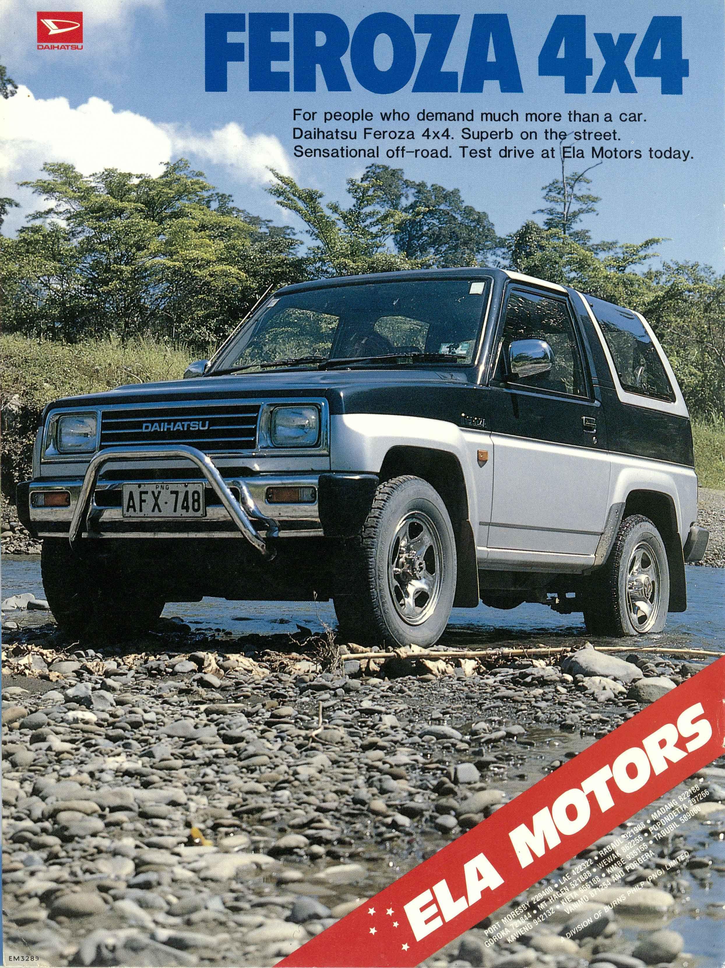 For people who demand much more than a car. Oaihatsu Feroza 4x4. Superb on th~street. Sensational off-road. Test drive at\ la Motors today.