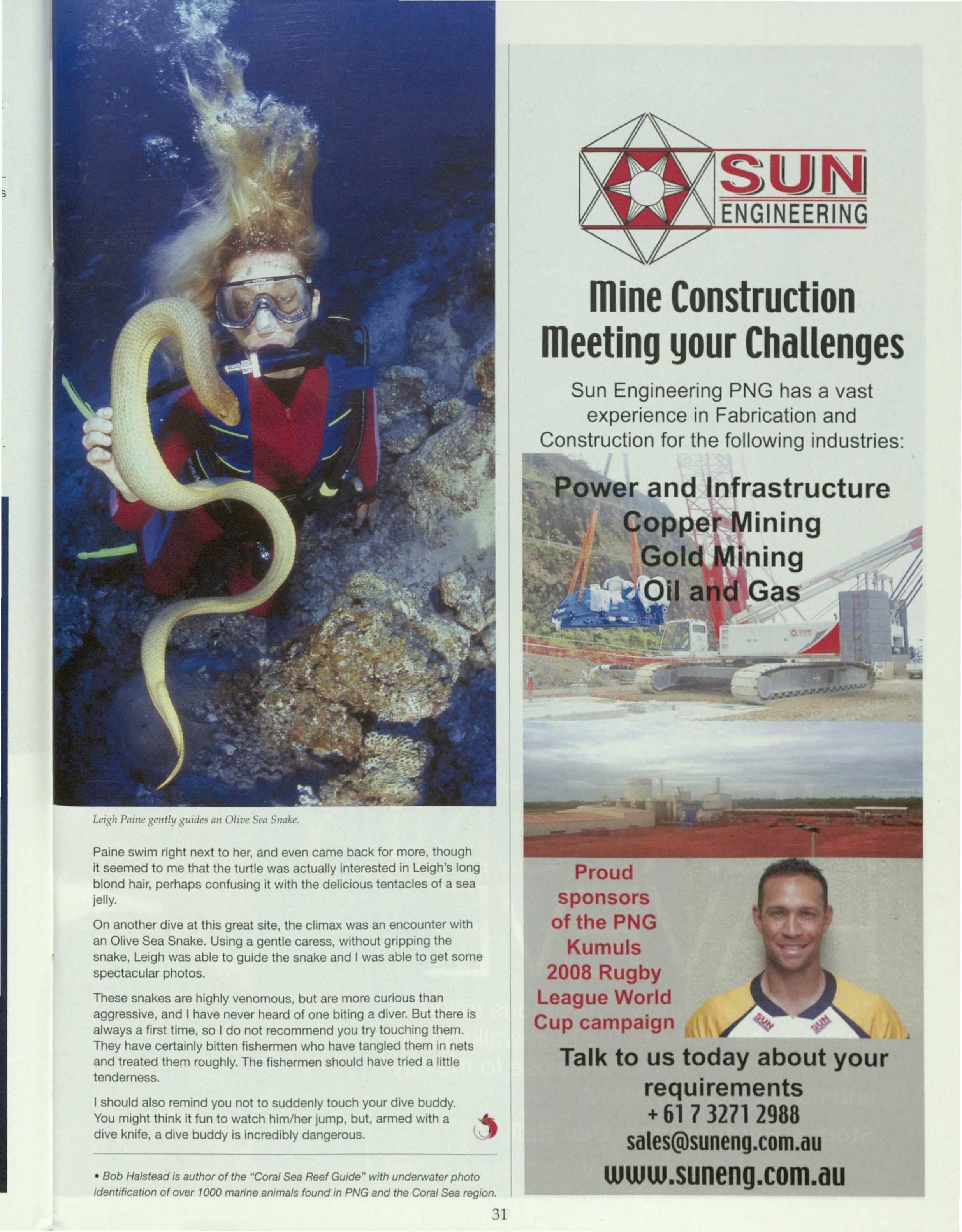 In this PARADISE issue, we feature just a glimpse of the magnificent diving experiences our visitors can enjoy in the country. Teeming with remarkable marine species and a great diversity of dive sites, the waters of PNG are truly a diver's Mecca.