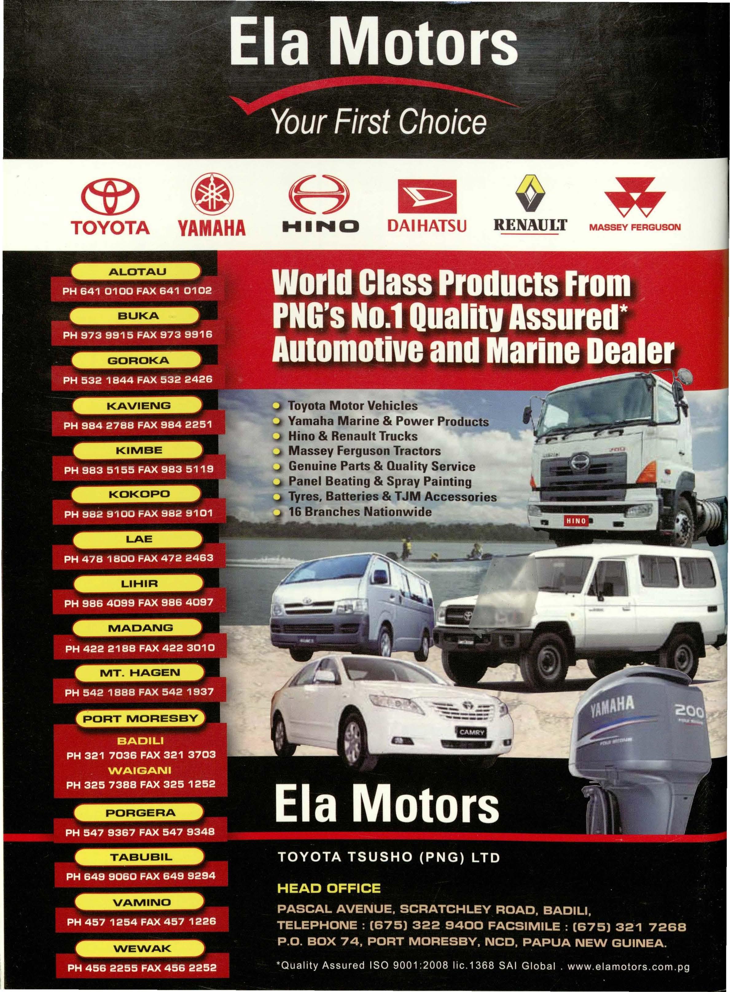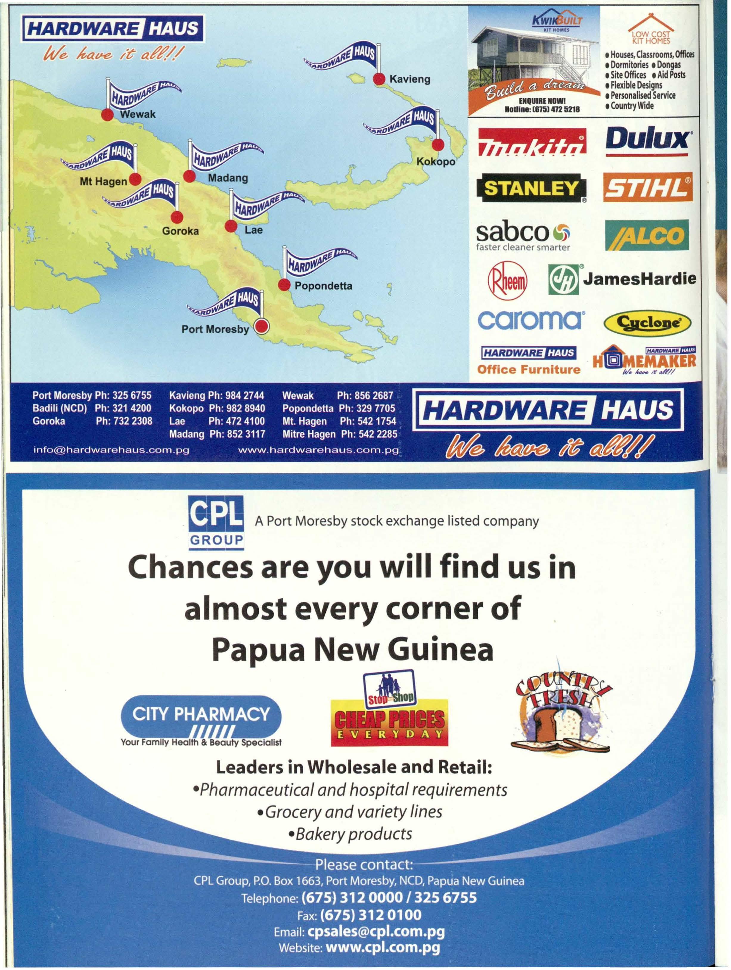 PORT MORESBY ph: (675) 325 5766 KOKOPO ph: (675) 982 9795 LAE ph: (675) 472 2444