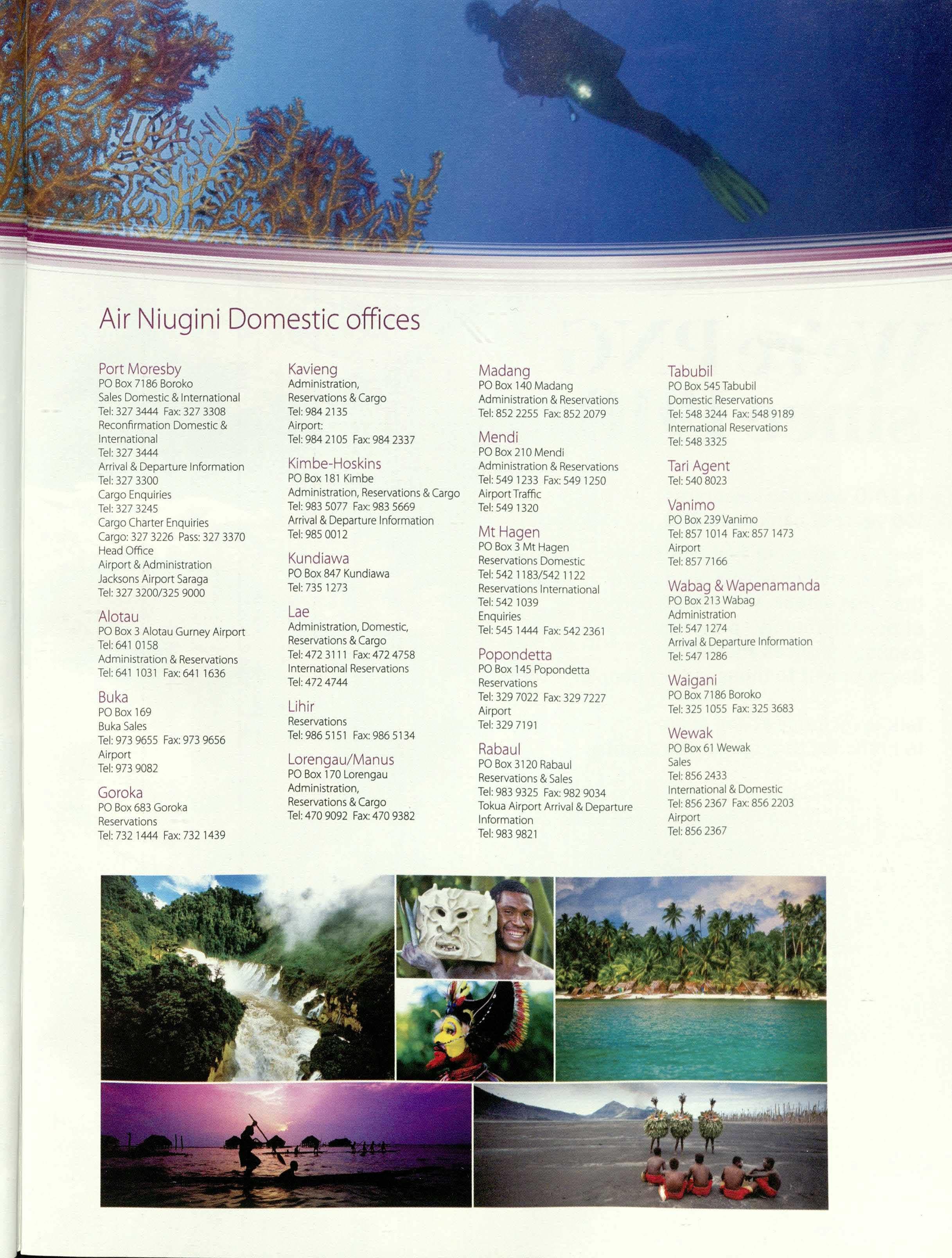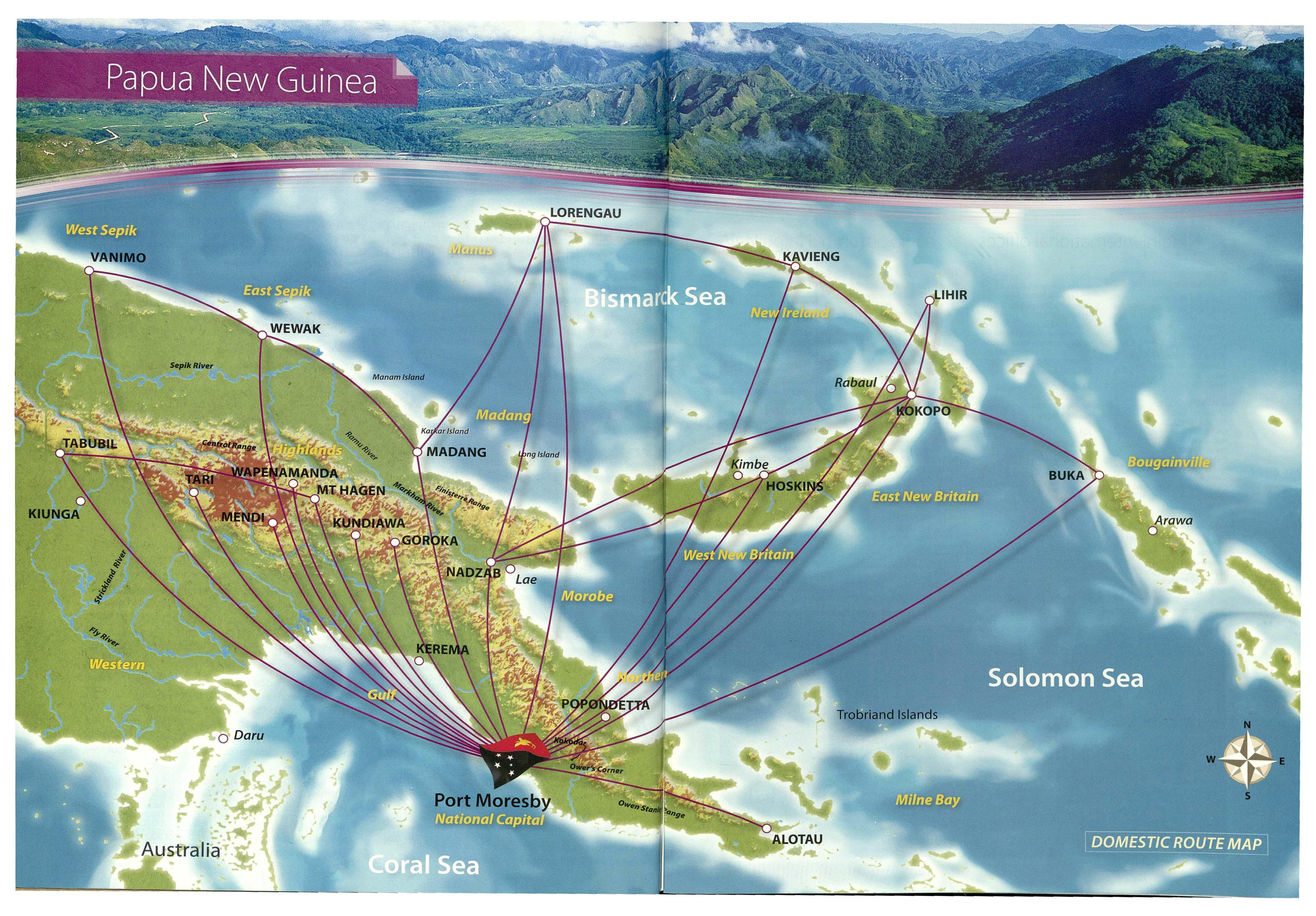 The domestic schedule has also been enhanced with improved interconnections between the island regions and Momase. The Hoskins service has also been developed --. into a same day service.