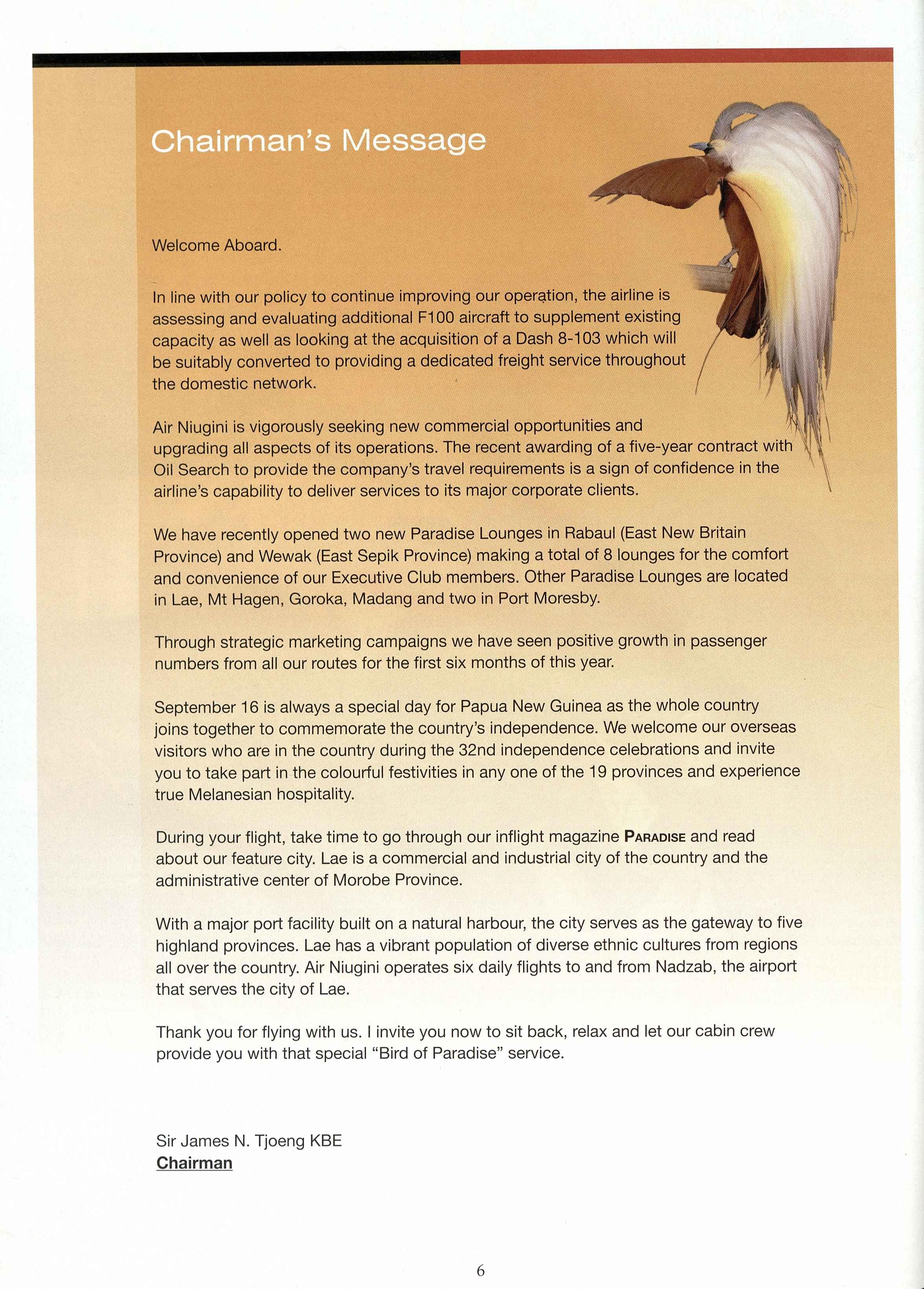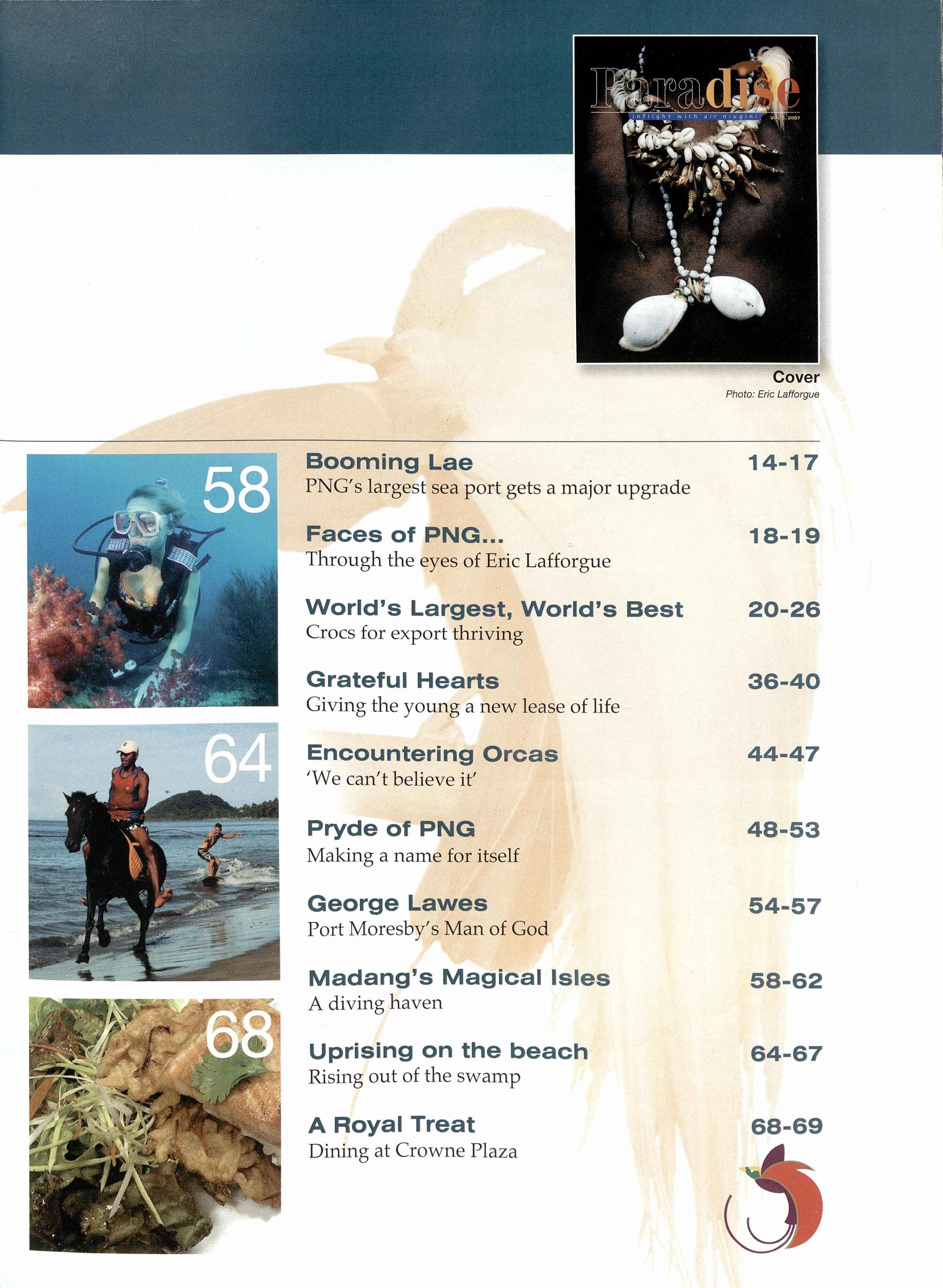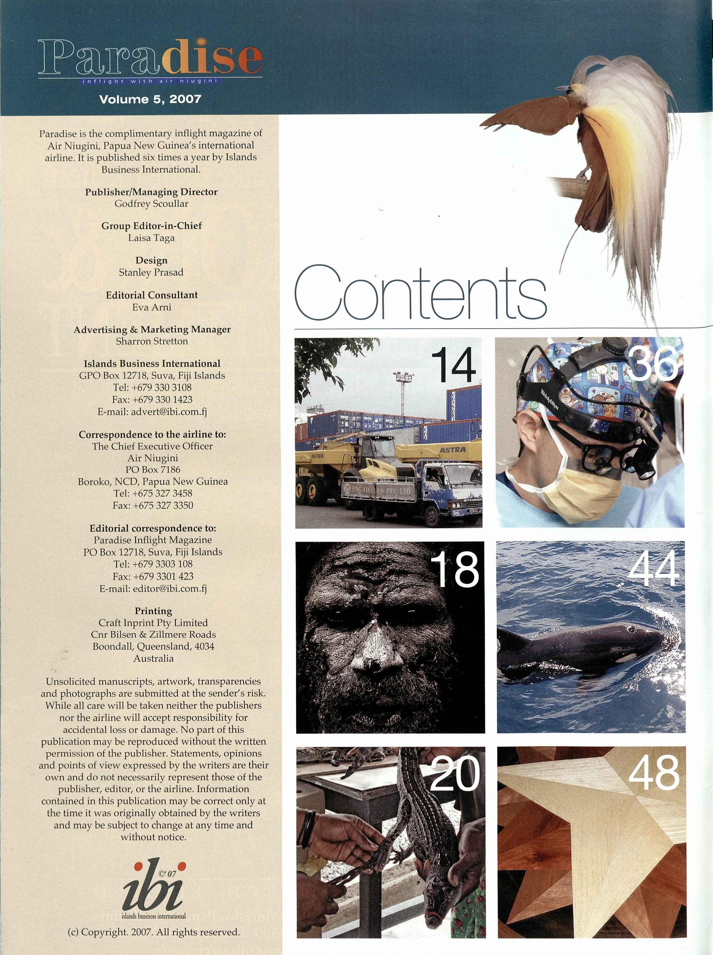 Vol 5 Sept 2007 of Paradise magazine, the inflight magazine of Air Niugini, the national airline of Papua New Guinea.