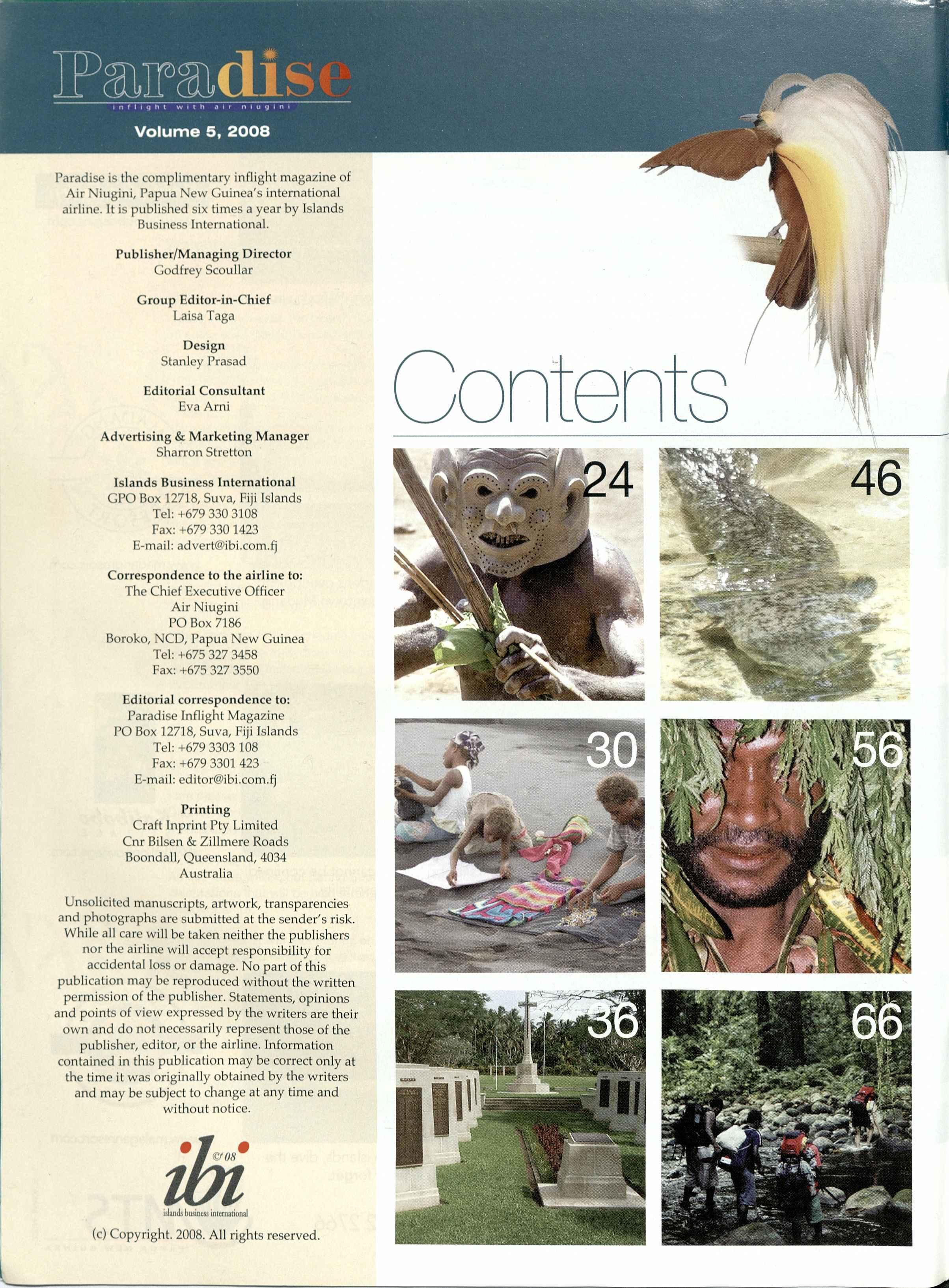 Vol 5 Sept 2008 of Paradise magazine, the inflight magazine of Air Niugini, the national airline of Papua New Guinea.