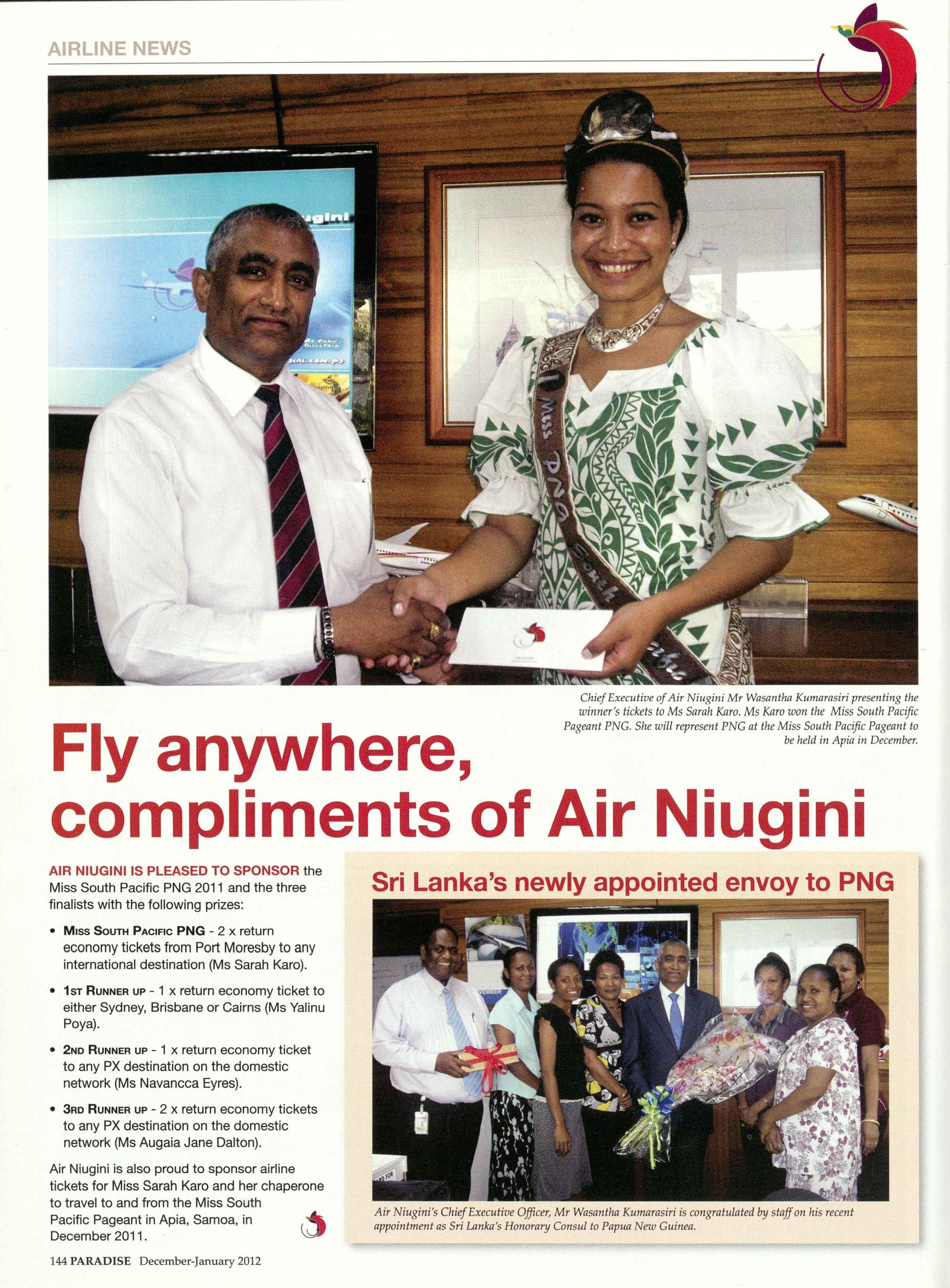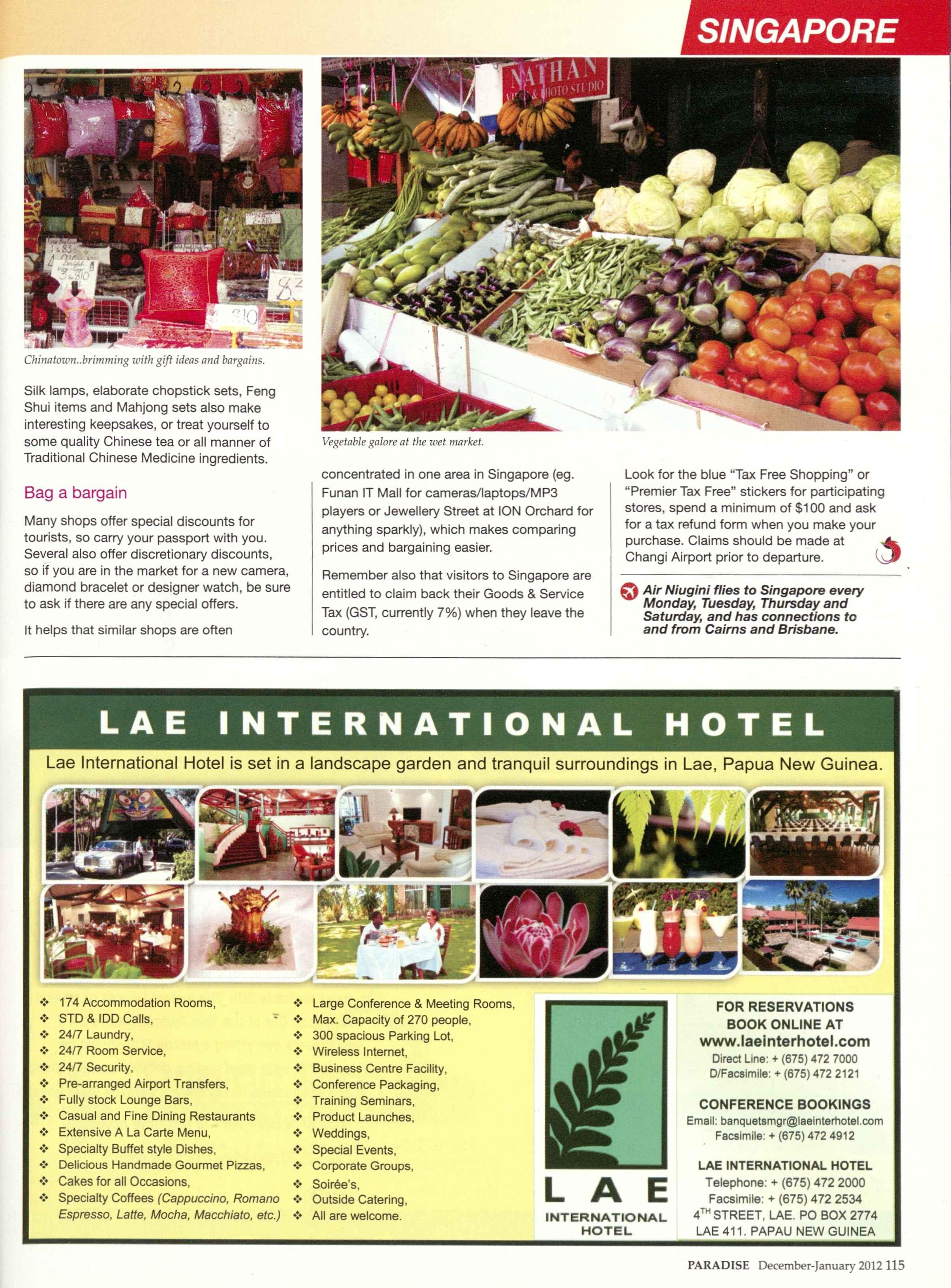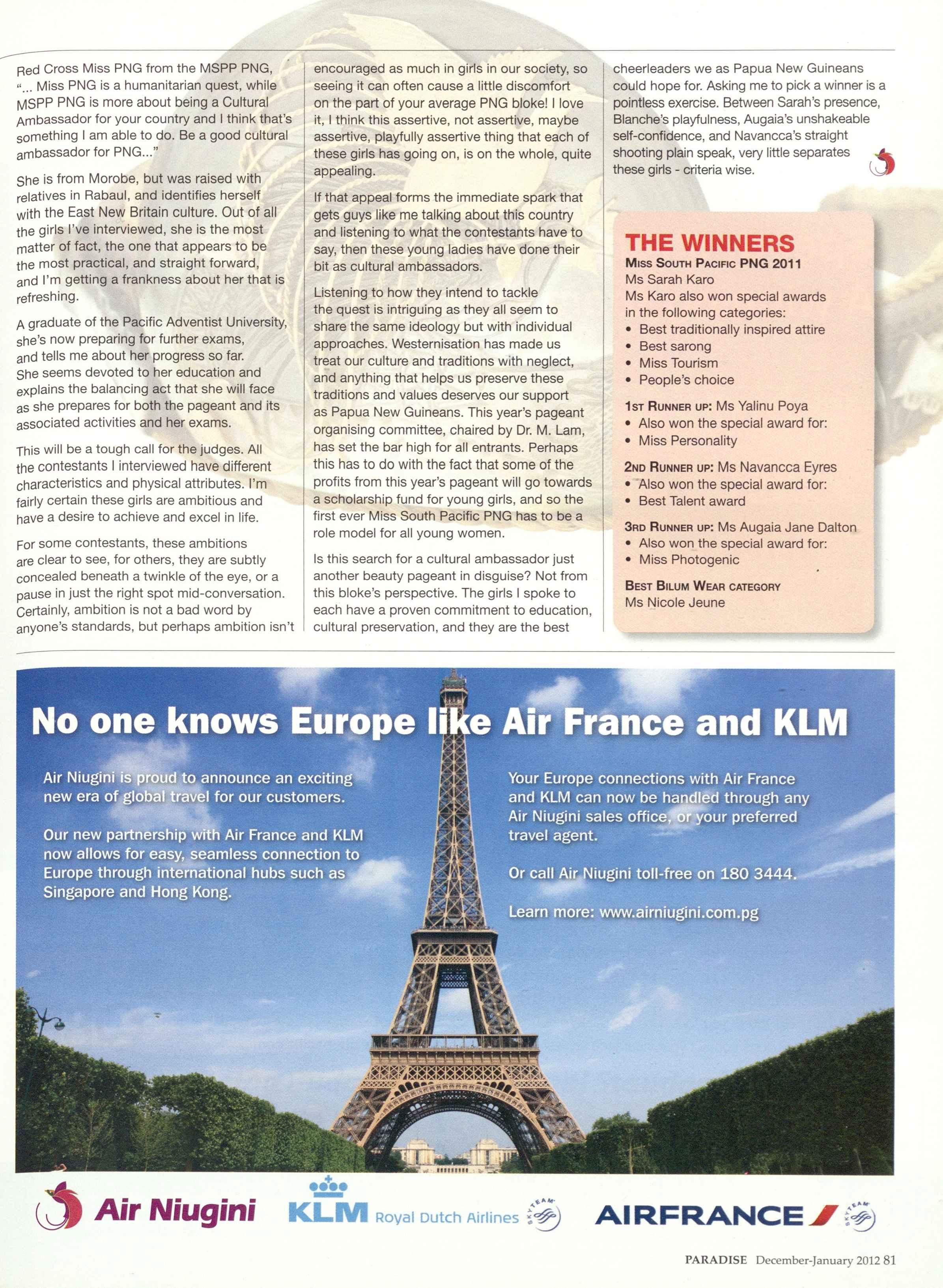 Vol 6 Nov 2011 of Paradise magazine, the inflight magazine of Air Niugini, the national airline of Papua New Guinea.