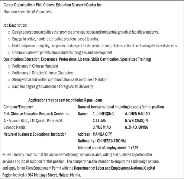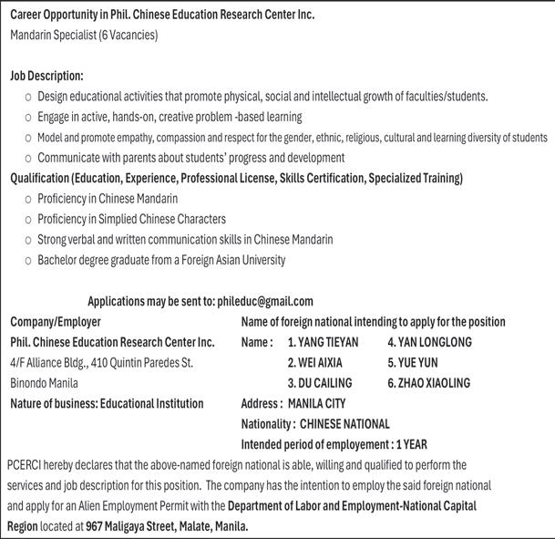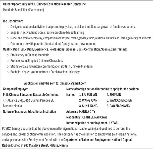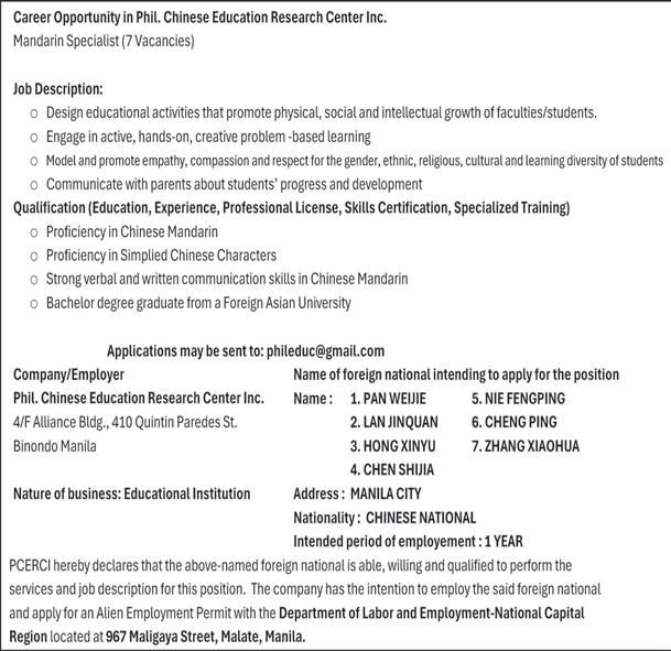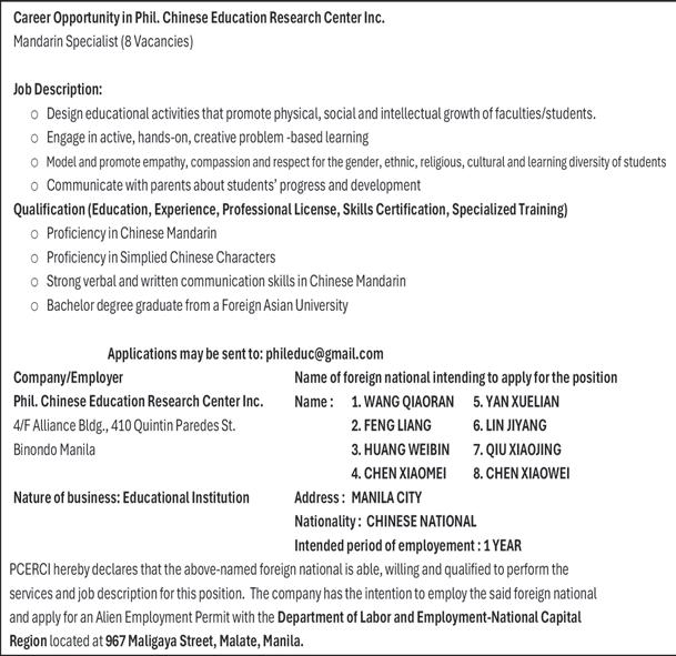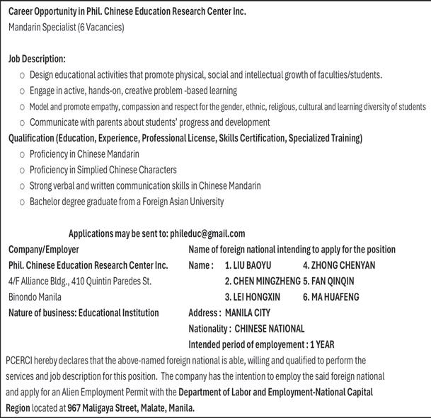 Filipino marine scientists had earlier criticized Chinese military’s building of artificial islands on atolls or rock outcrops in the Philippine-claimed West Philippine Sea. Dredging and land rec-