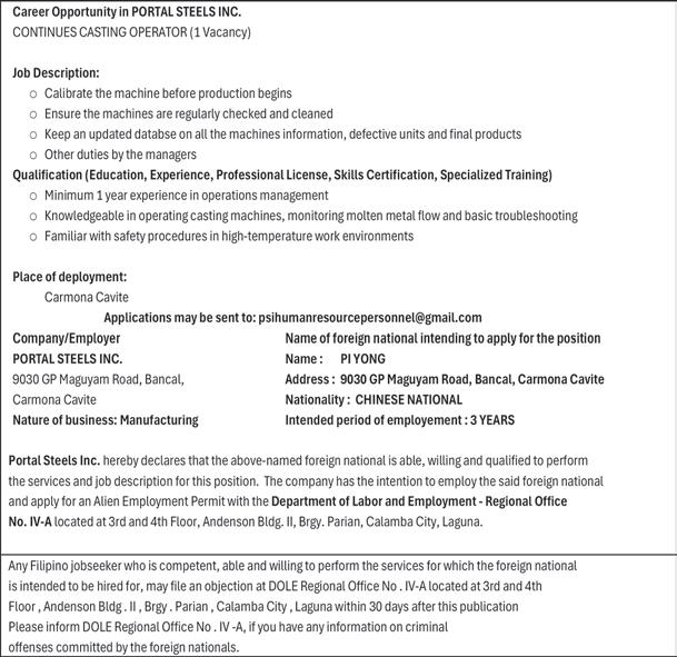 a tournament—it is a celebration of resilience and excellence, values that every Filipino athlete carries with pride.” Throughout its history, PHLPost has honored the nation’s sporting icons through stamps that travel the world, immortalizing champions such as Manny Pacquiao, Olivia “Bong” Coo, Paeng Nepomuceno, Efren “Bata” Reyes, Hidilyn Diaz and Carlos Yulo, among others. T he tradition continues with the FIVB Men’s World Championship, where stamps serve not only as collectibles but as symbols of national pride, cultural diplomacy, and the boundless Filipino sporting spirit. This special issuance also pays tribute to the PSC for its decades-long contribution in developing Philippine sports—from grassroots programs to international competitions—uplifting national pride and inspiring future generations to pursue greatness.