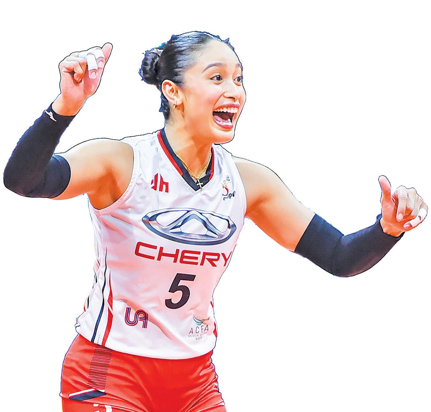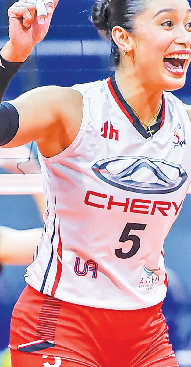 Imee celebrates Imee Hernandez celebrates a point for Chery Tiggo but the Crossovers yield to Kobe Shinwa’s amazing comeback, 21-25, 17-25, 26-24, 25-22, 15-6, on Friday that sends the Japanese to the finals of the Premiere Volleyball League Invitational against PLDT at the Smart Araneta Coliseum. PVL IMAGES