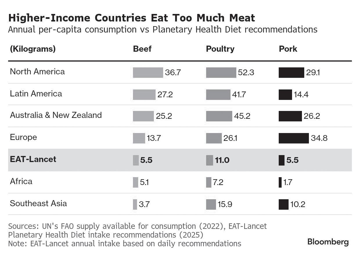 The commission says that while the Global North must cut back sharply, parts of the Global South may need to increase animal protein intake to address malnutrition — though not to the levels seen in wealthy countries.