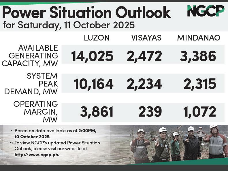 THE National Grid Corporation of the Philippines (NGCP) said Friday night that all transmission lines earlier affected by the magnitude 7.4 earthquake that rocked Davao Oriental were now restored.