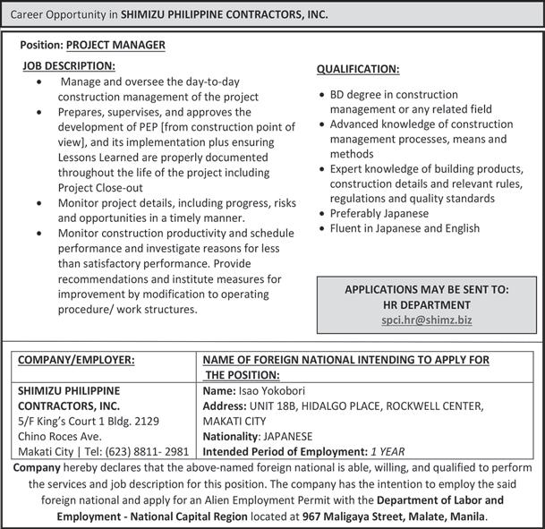 Ralph David Magno, HyundaiSubic human resource manager, said the firm is now recruiting welders, fitters, painters, production engineers, and heavy equipment operators who have the skills and experience in shipbuilding for the firm’s Subic operations.