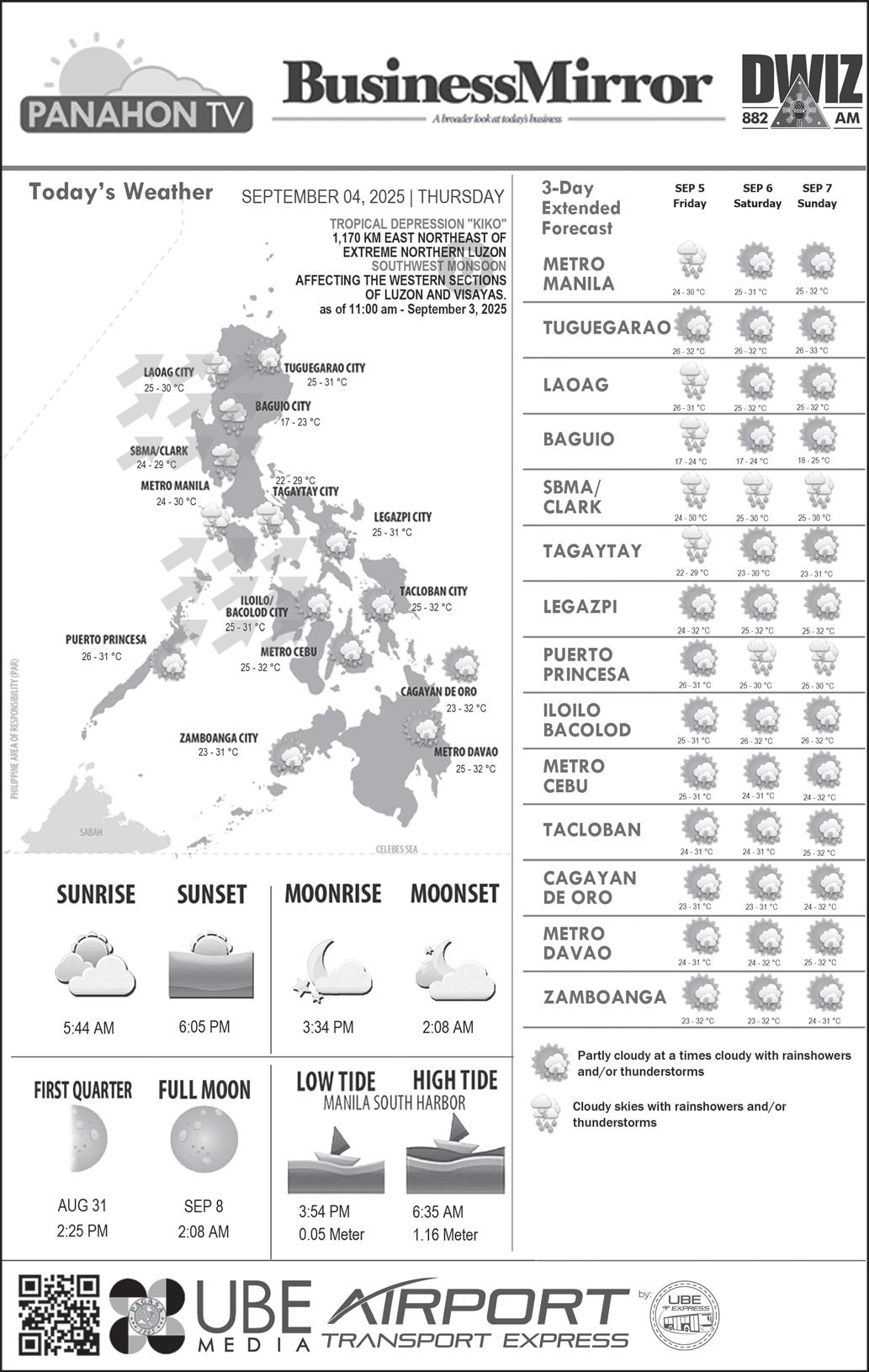 As of Wednesday morning, Tropical Depression Kiko was moving northward toward southern Japan and was expected to exit the Philippine area of responsibility by afternoon.
