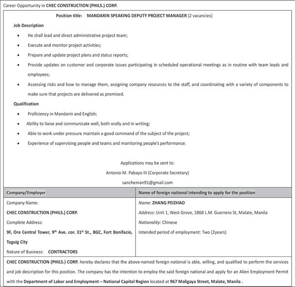 “They are already in contract negotiations. I think we can award it hopefully sometime by October or November. Because the process there is, you still have to send it to JICA [Japan International Cooperation Agency] for their concurrence. So there’s a bu-