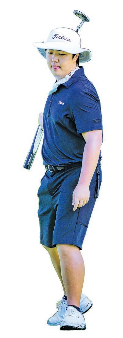 WITH a six-shot lead, Kim Seo Yun (top) has the luxury to relax for as her fellow South Korean Ha Tae Won (right) has his hands full with co-leader Keanu Jahns. PGT PHOTOS